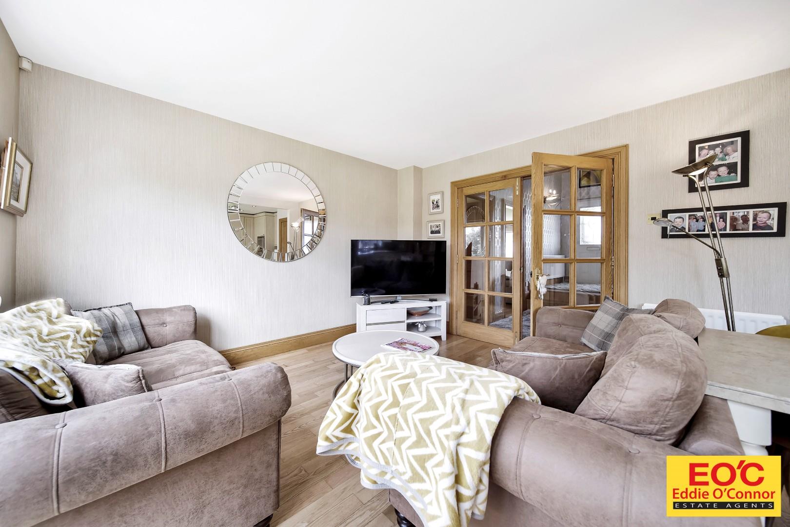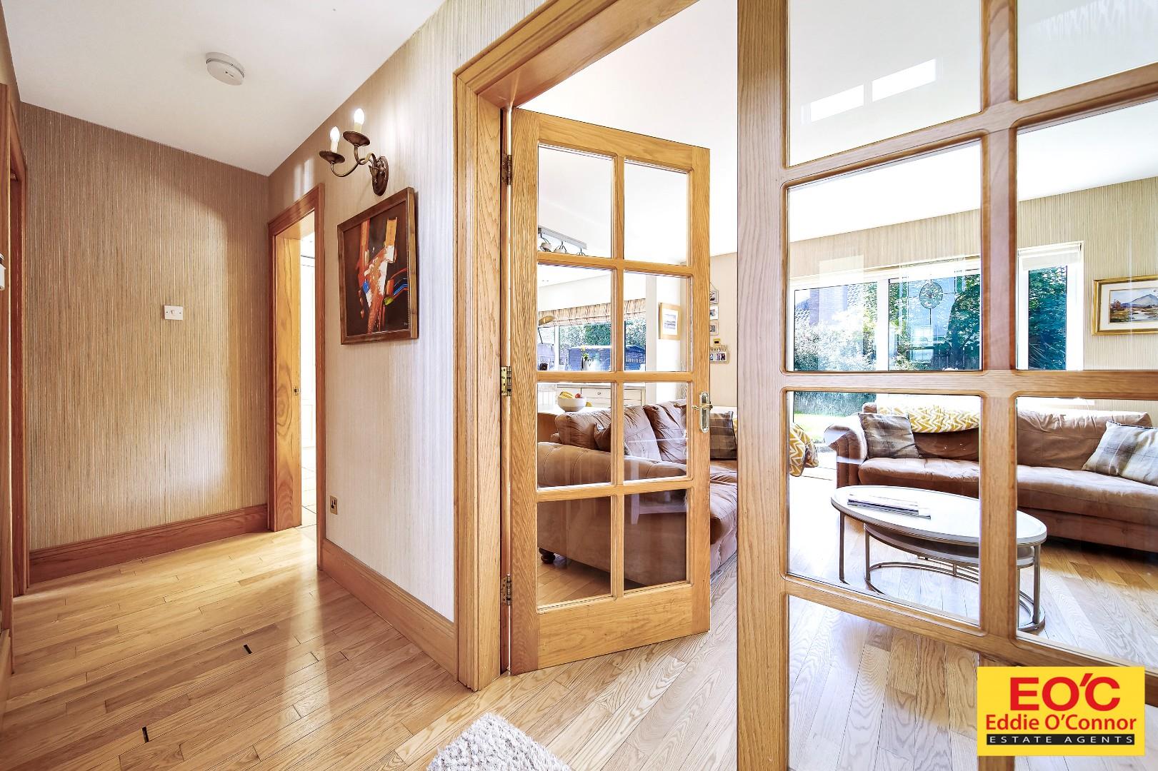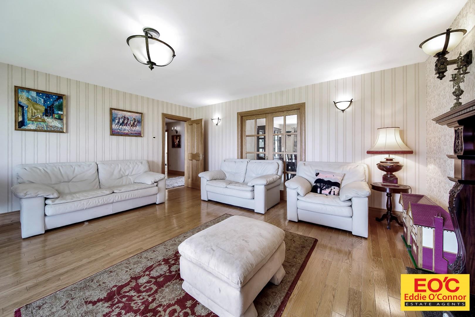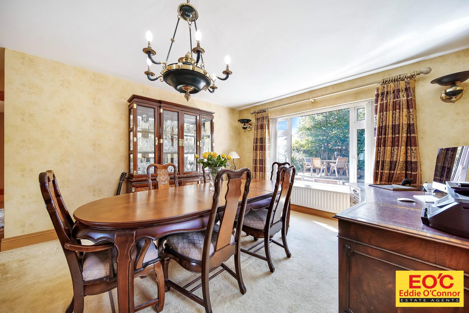 This large bright room has a Sematic Houseworks Kitchen, with polished Lime stone worktop and Island. The Island has an Induction Hob and stainless steel extractor above. The kitchen has integrated double ovens, Fridge freezer, Dish washer, Filter water tap and stainless steel 11/2 tub sinks with Limestone draining area. There is an attached breakfast bar seating area, recessed lights, fully tiled floor area in kitchen and wooden floor in dining area, sliding door to garden and patio area at rear.