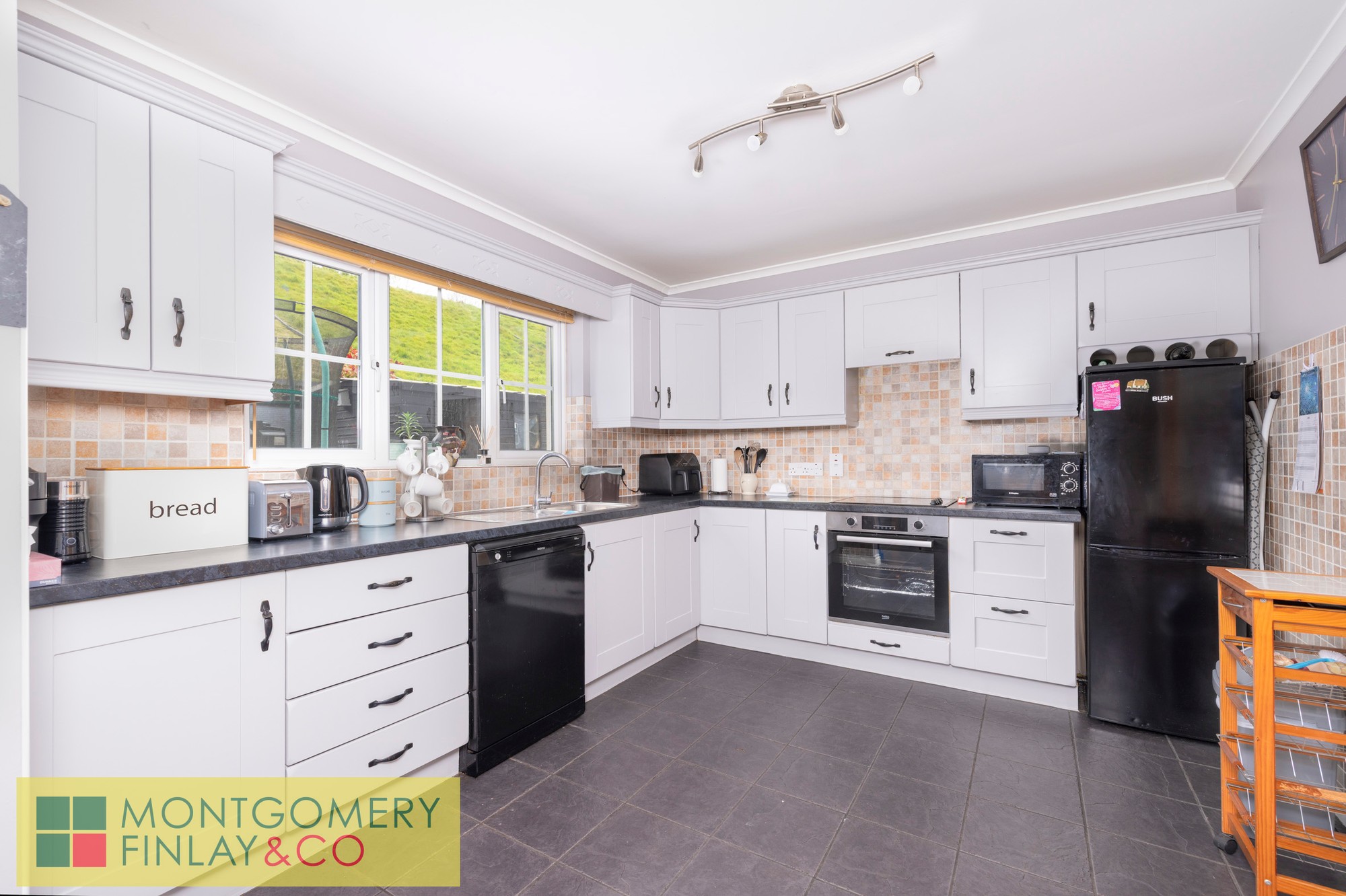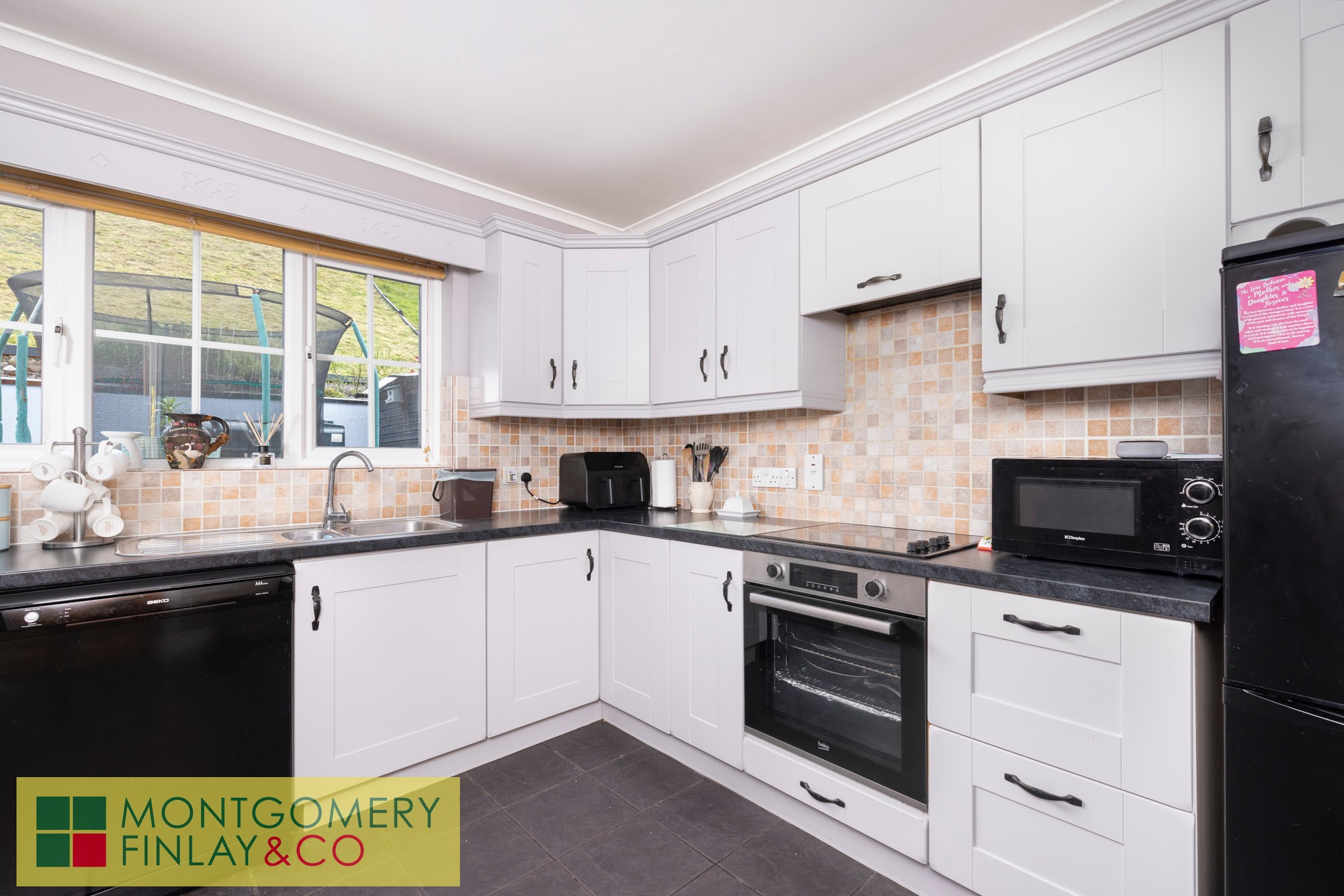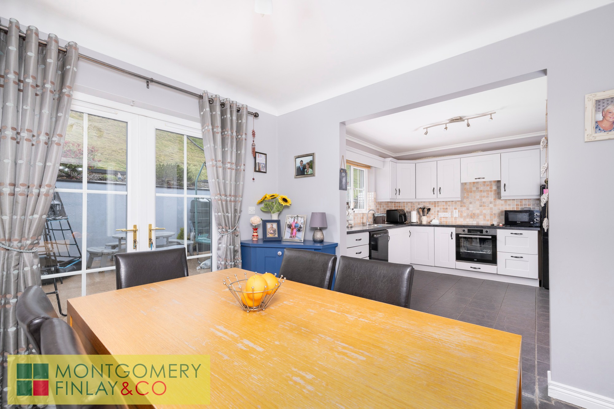 Finished to a high standard throughout, the property features an open-plan kitchen and dining area which flows seamlessly into a bright and welcoming living room – a perfect space for entertaining or relaxing with family. Double glazed windows and oil-fired central heating ensure energy efficiency and year-round comfort.