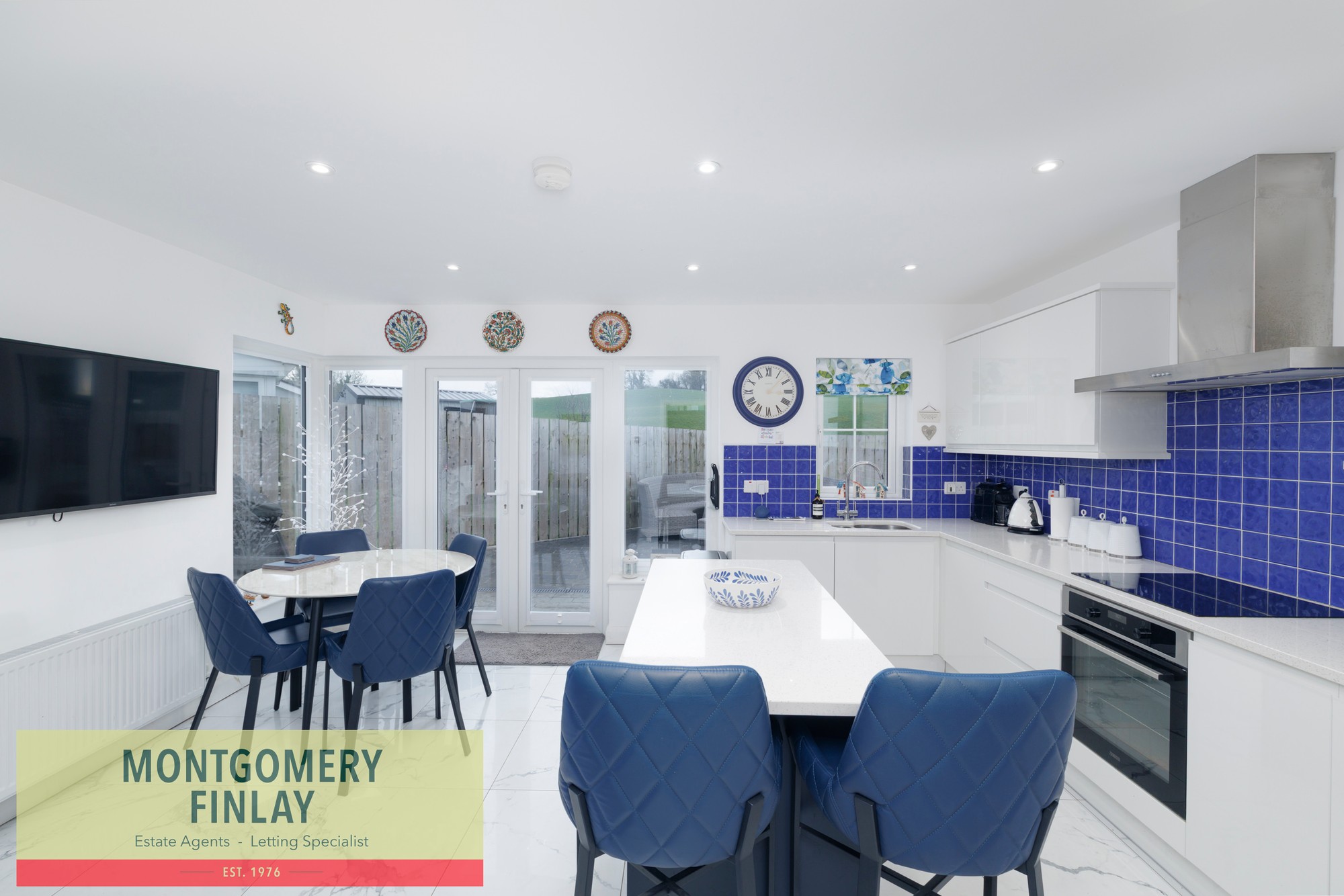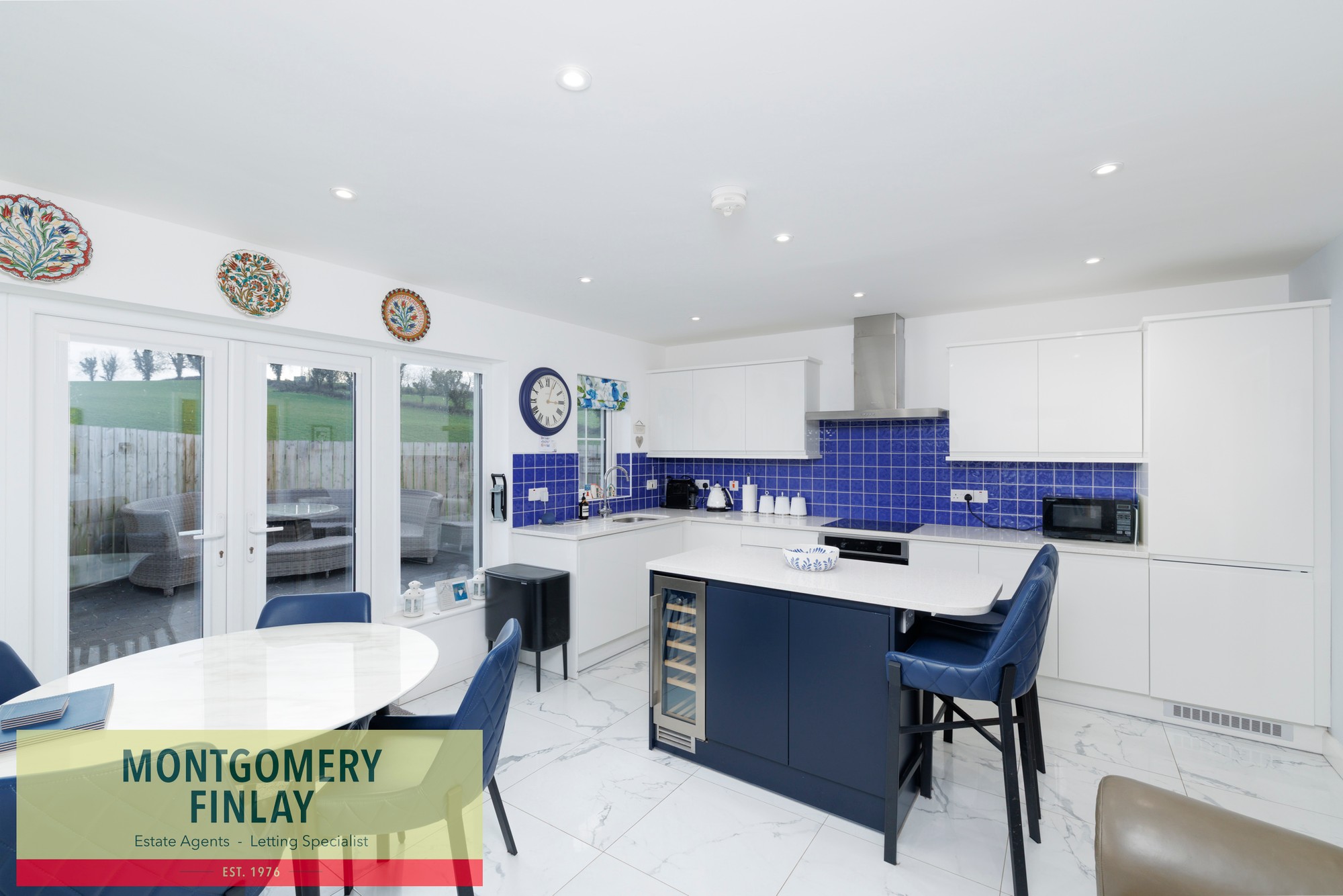 - Open-plan kitchen / dining with island