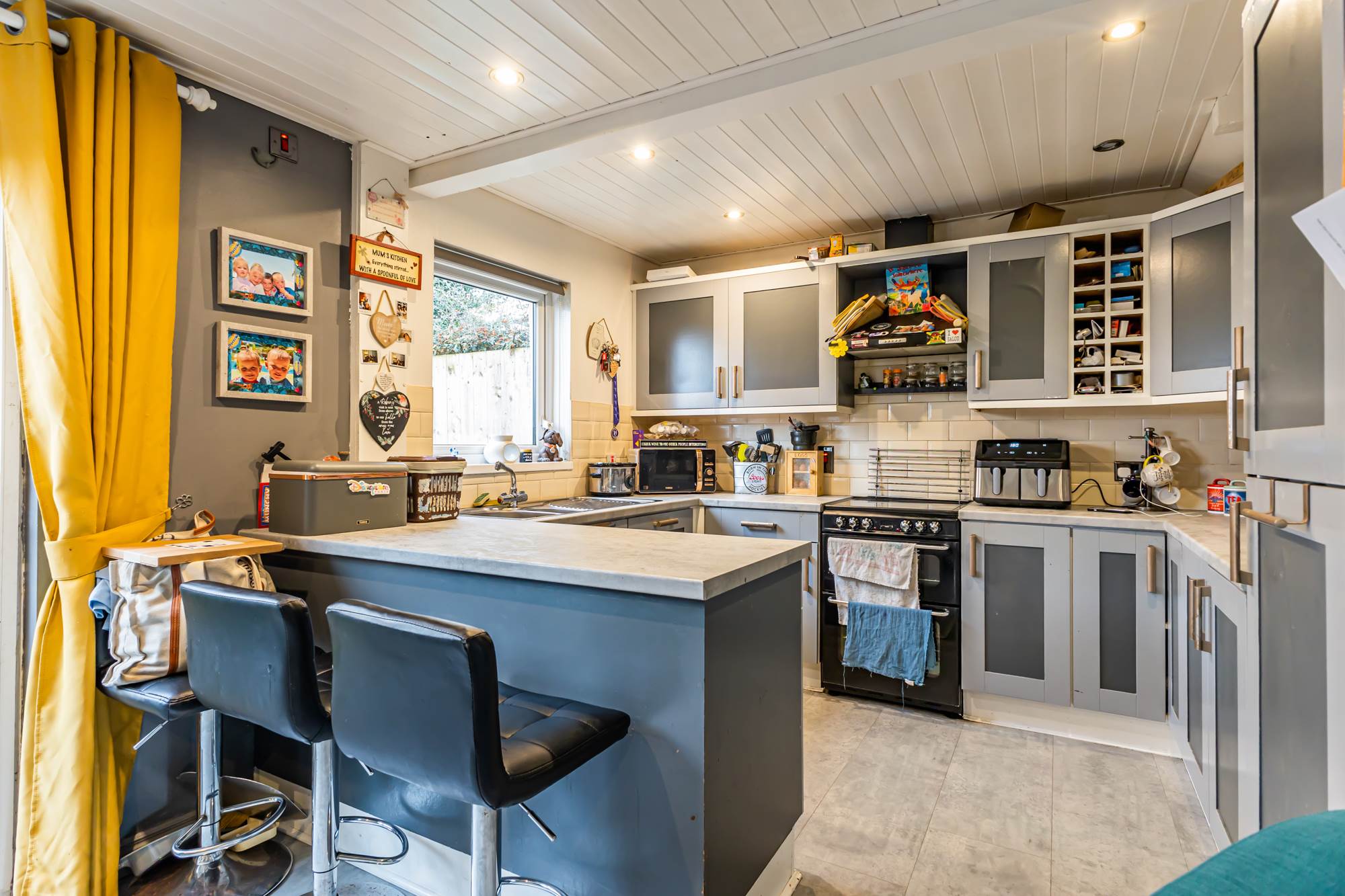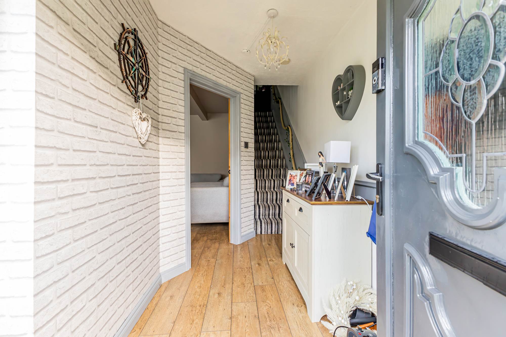Internally, the accommodation comprises a welcoming open-plan living room with under-stair storage, a well-appointed kitchen diner with a range of built-in units, three spacious bedrooms and a modern family bathroom with a contemporary white suite.