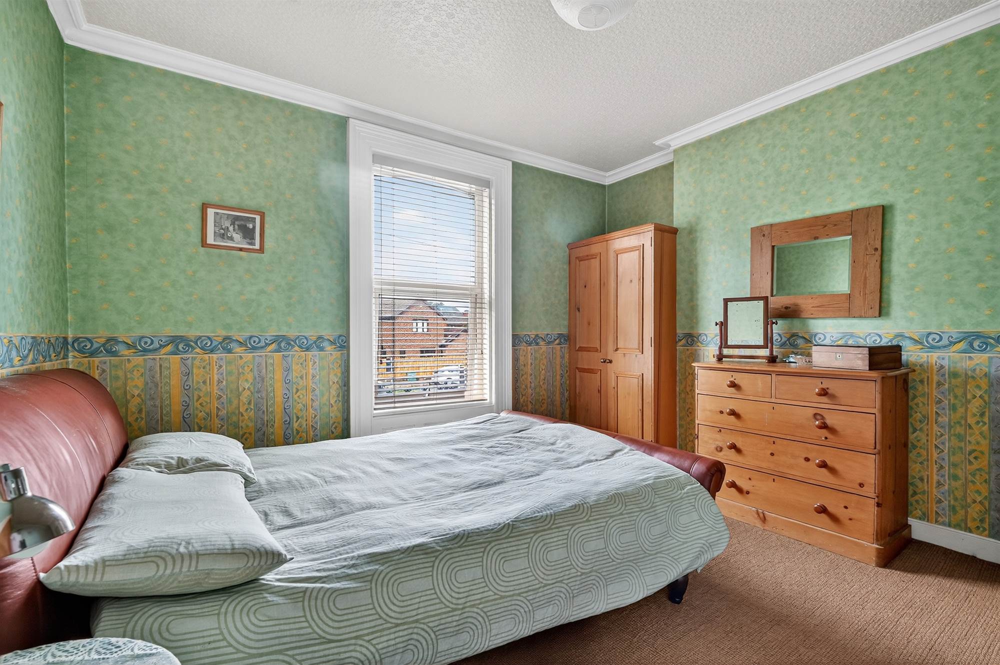 (at widest points). Outlook to front, cornice ceiling, built-in wardrobes.