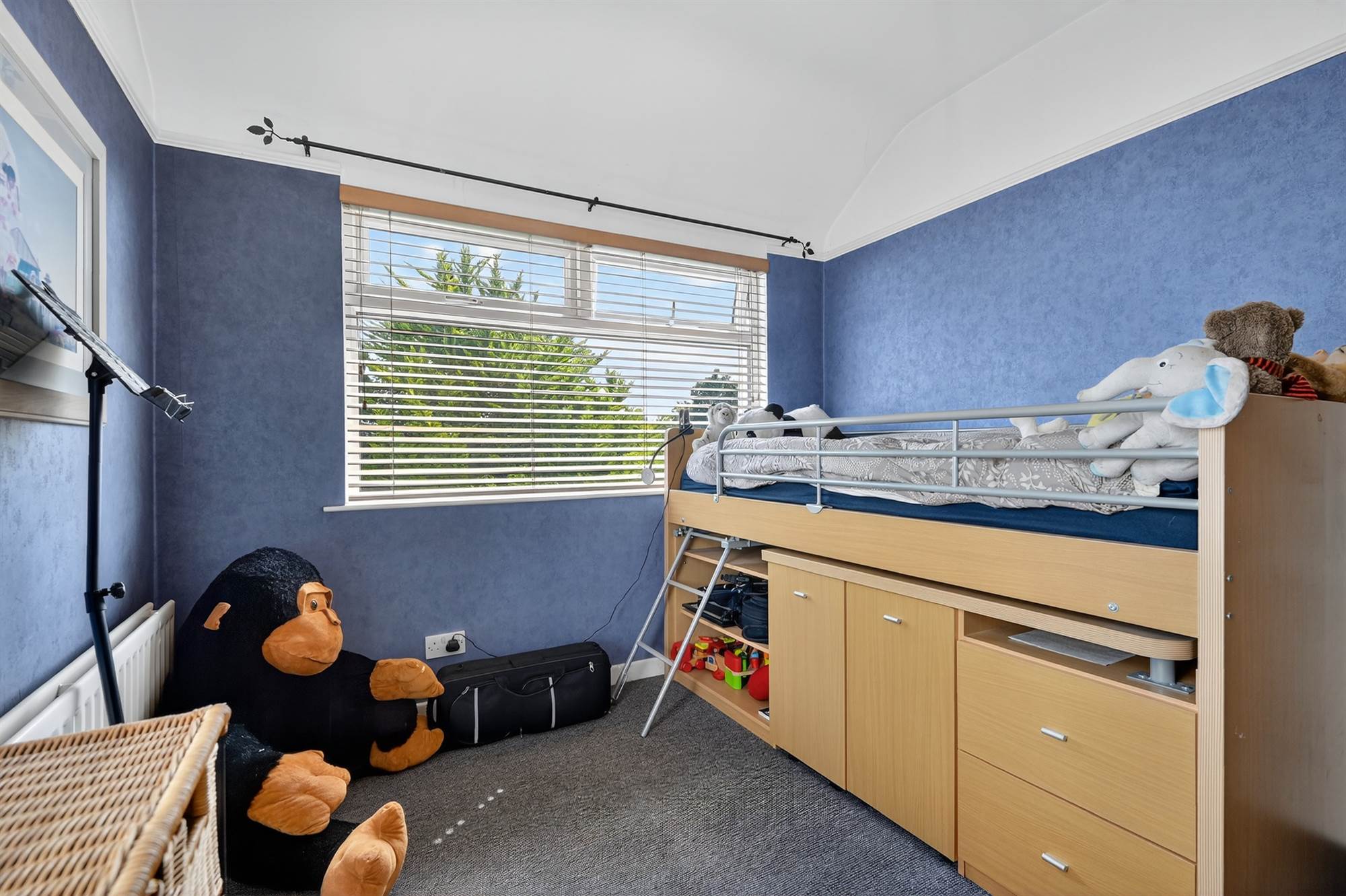 Externally, the home enjoys beautifully maintained gardens to the rear, offering a private and tranquil outdoor setting. A spacious driveway provides off-street parking for multiple vehicles.