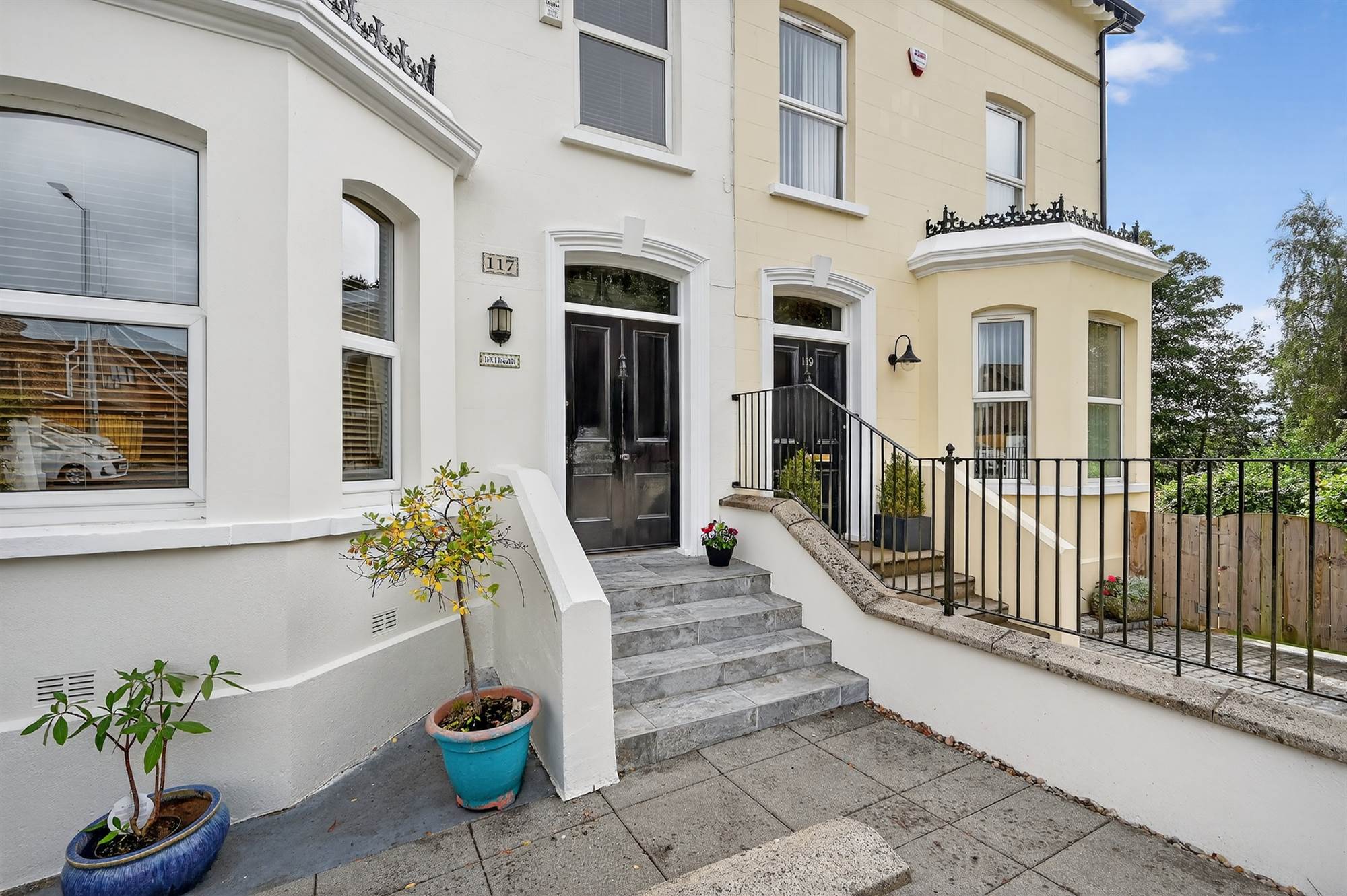 Set on a spacious and mature plot, the property combines timeless character with practical, well-appointed living across four floors. The main residence extends to over 2,000 sq. ft. and comprises a welcoming entrance hall with original detailing, an open plan living dining room and a large kitchen/dining area ideal for family gatherings or entertaining. High ceilings and large dual aspect windows flood the interiors with natural light, enhancing the sense of space and grandeur throughout.