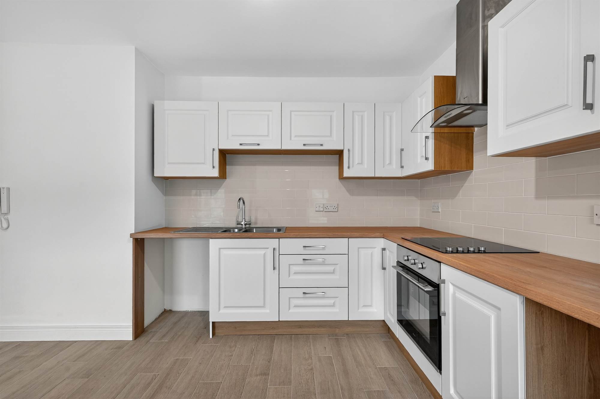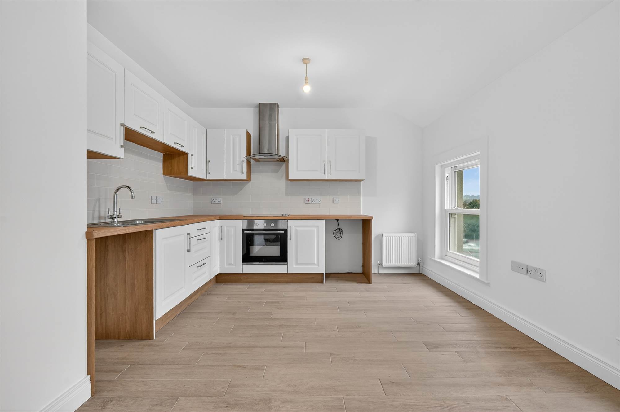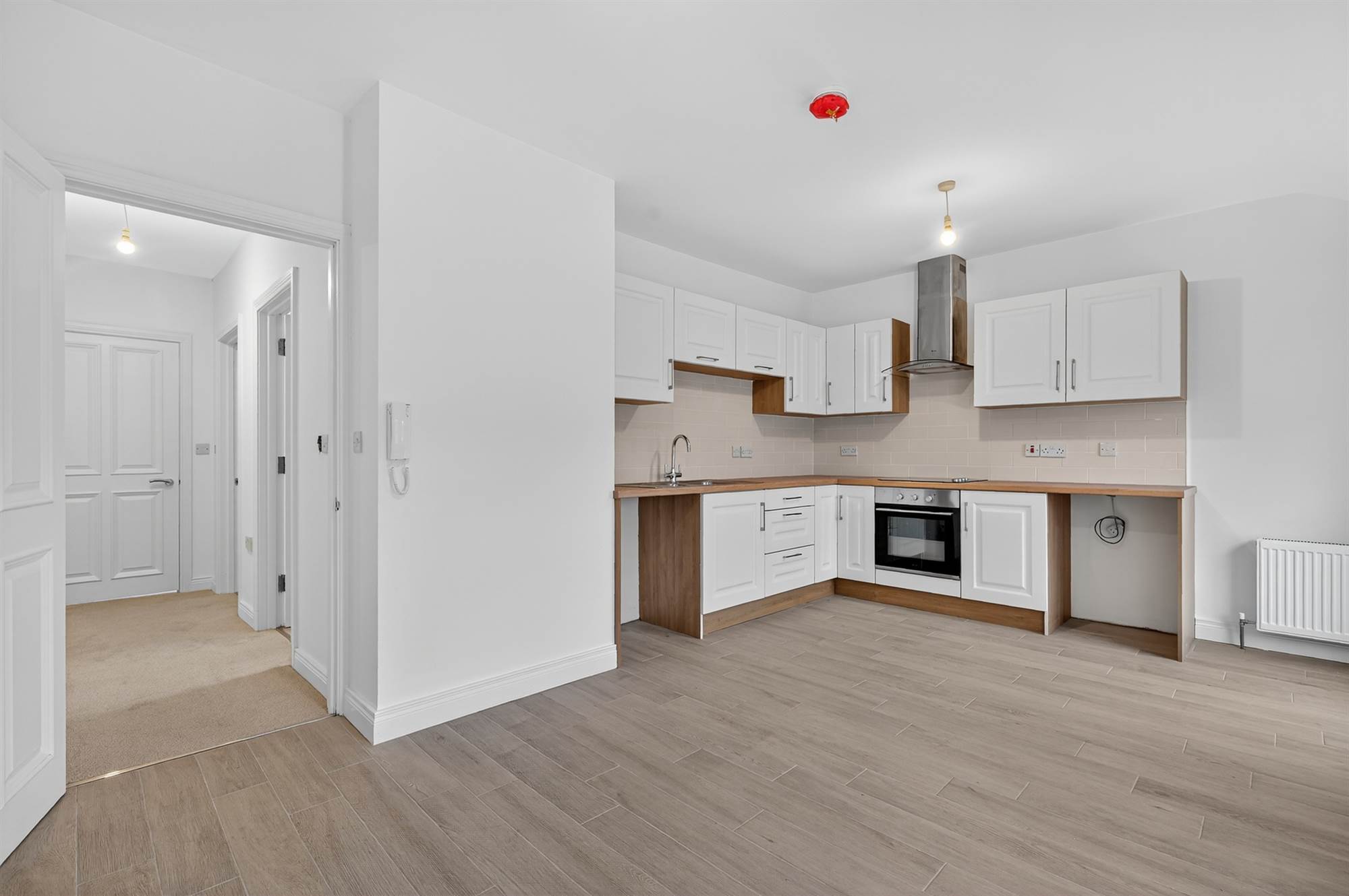 As you enter the apartment, you are greeted by a bright and airy kitchen / dinirng area, perfect for entertaining guests. The modern kitchen is fitted with all the latest appliances, including a dishwasher, washing machine and microwave. The modern bathroom includes a new bath and a fully tiled shower enclosure. One large double bedroom with newly fitted carpets.This apartment has been been tastfully renovated throughout and is move in ready.