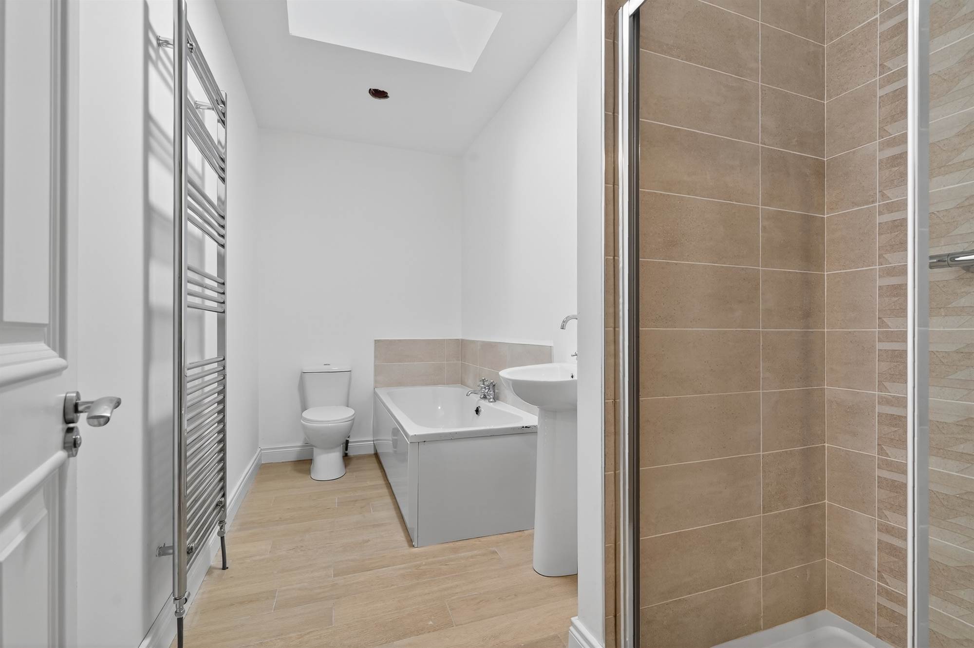 Luxury Bathroom with Suite Comprising of Shower, Bath, Wash Hand Basin and Low Flush W
