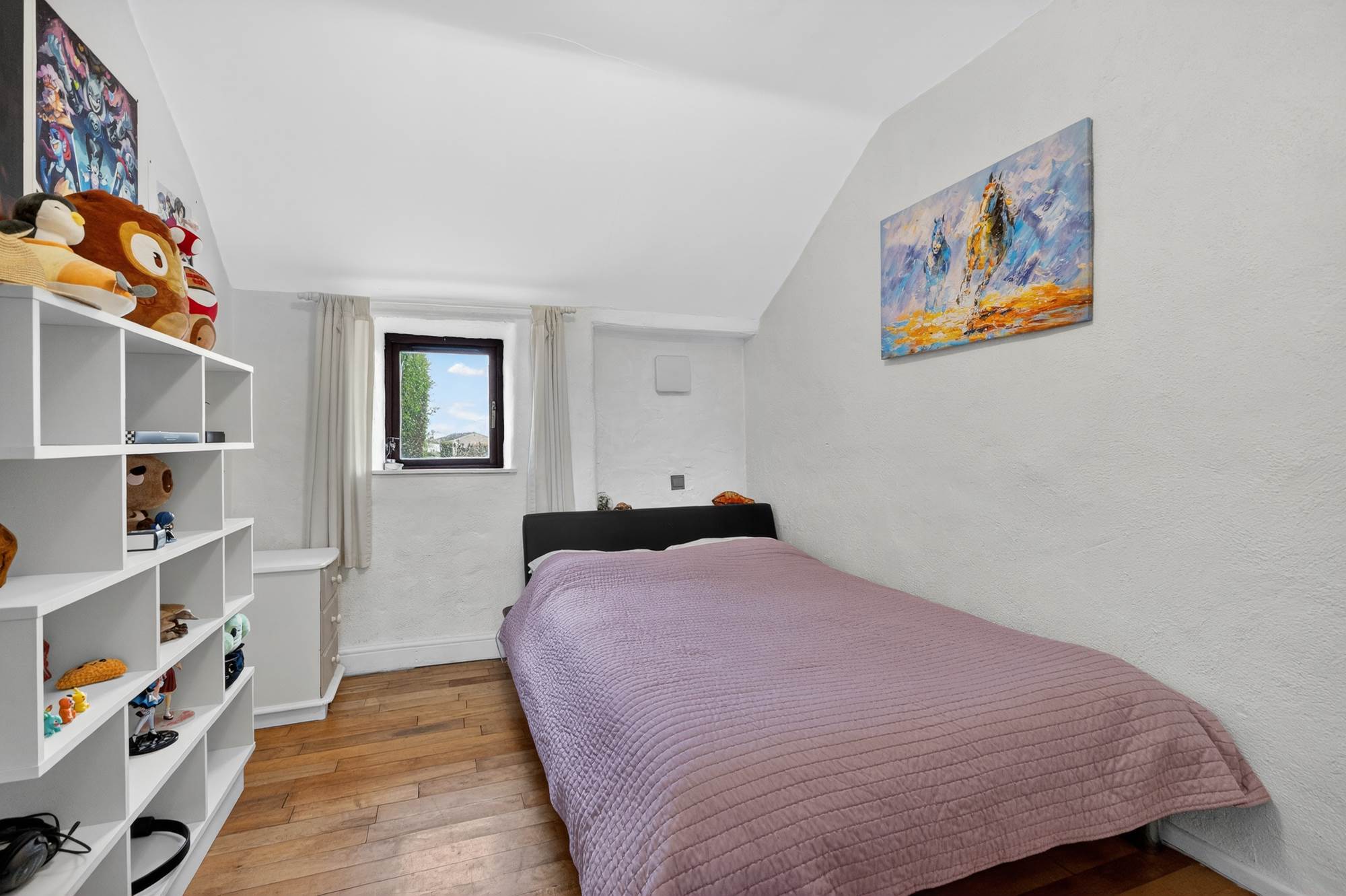 Sliding sash windows, solid oak wooden flooring. Outlook to front. Pine tongue and groove ceiling.