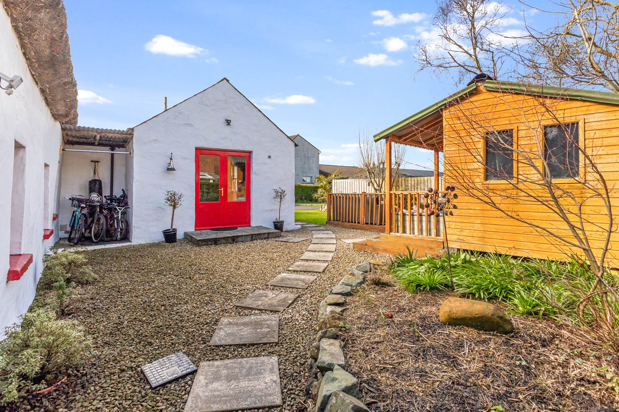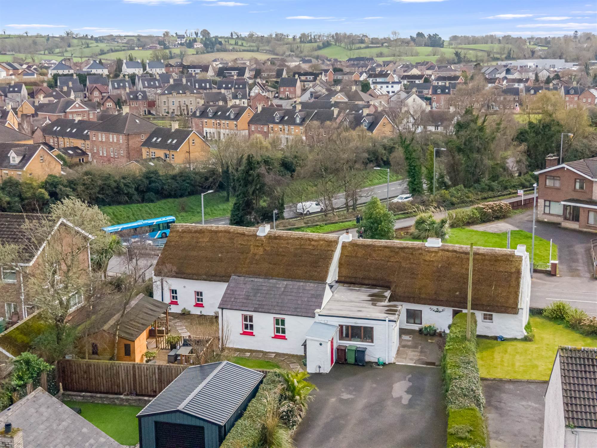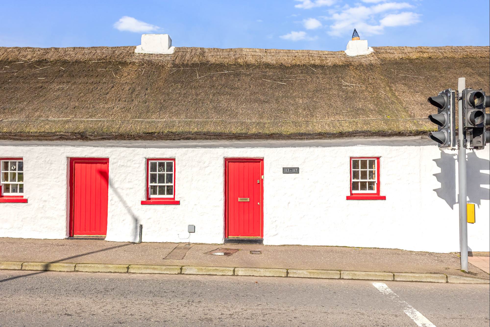 Coming from Belfast, proceed past the roundabout at Ballantine Garden Village up the hill to the traffic lights. 113-117 is the row of white cottages located on the right hand side and car access is provided via Meeting House Lane to the rear.