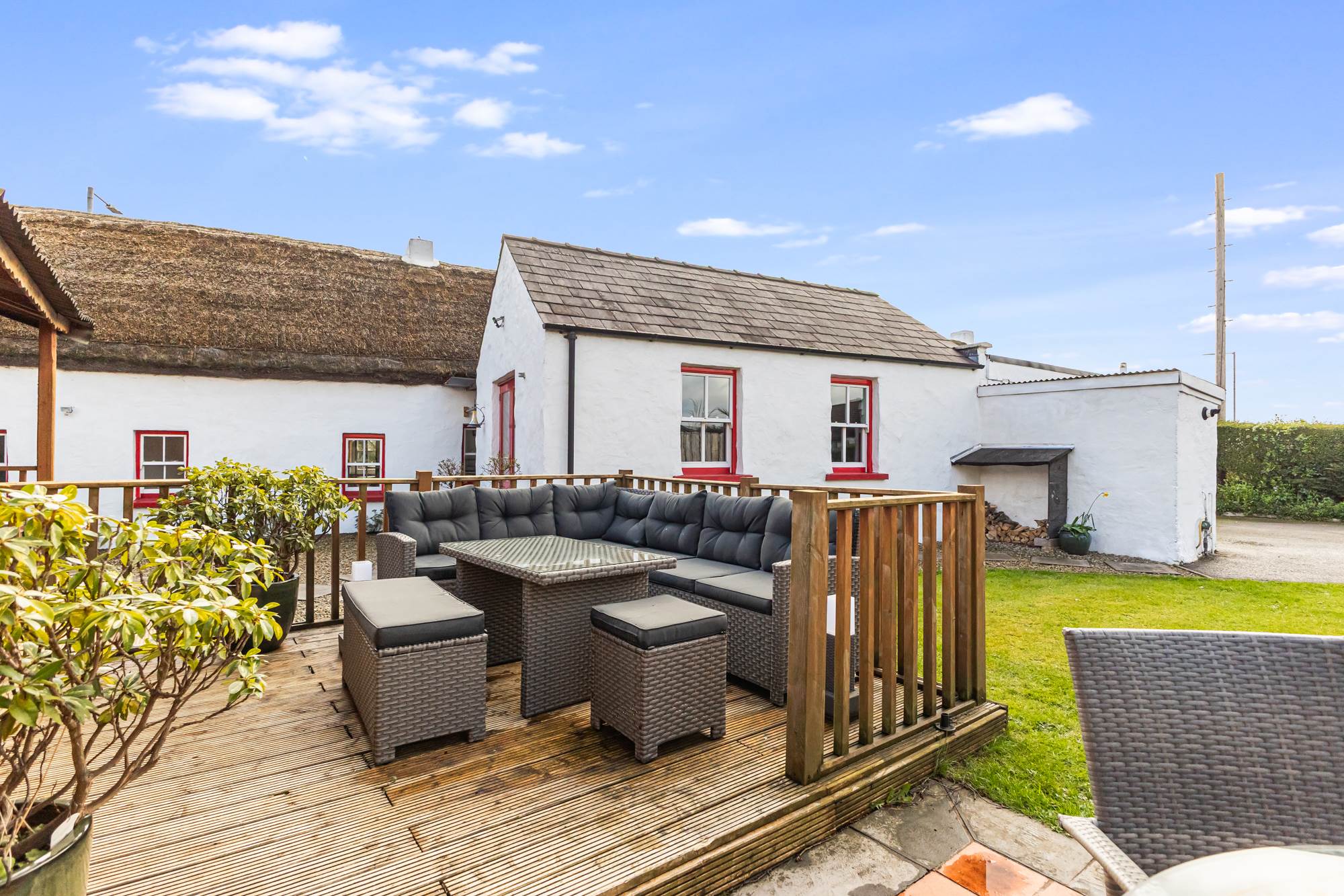 Externally, the property is set within extensive, mature grounds offering privacy and ample space for outdoor enjoyment. Additional benefits include gas-fired central heating and generous off-street parking. The traditional thatched roof combined with a wealth of retained period features enhances the unique charm and authenticity of this remarkable home.