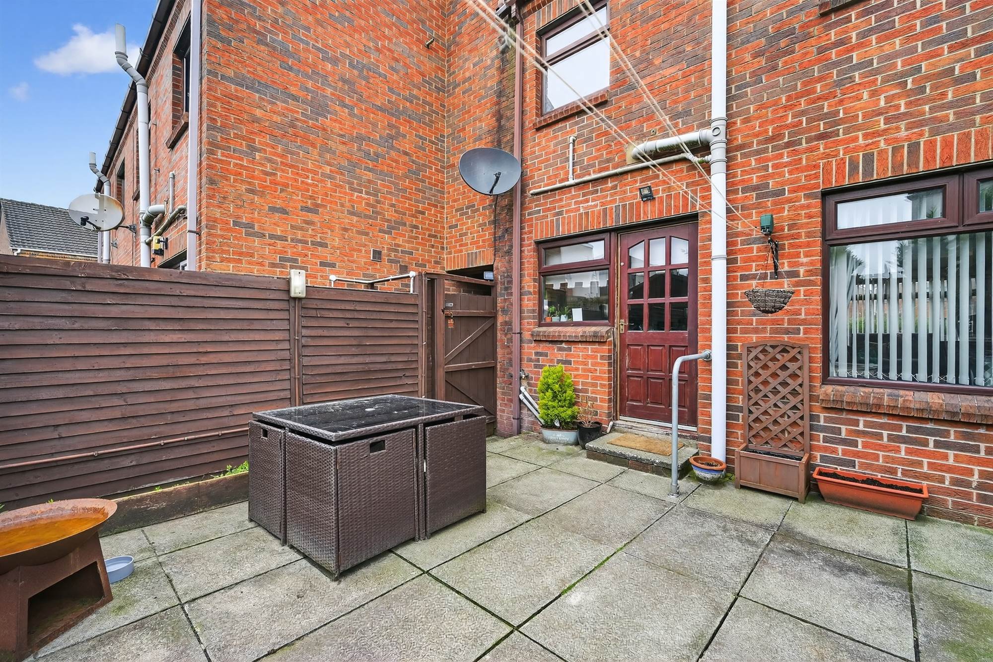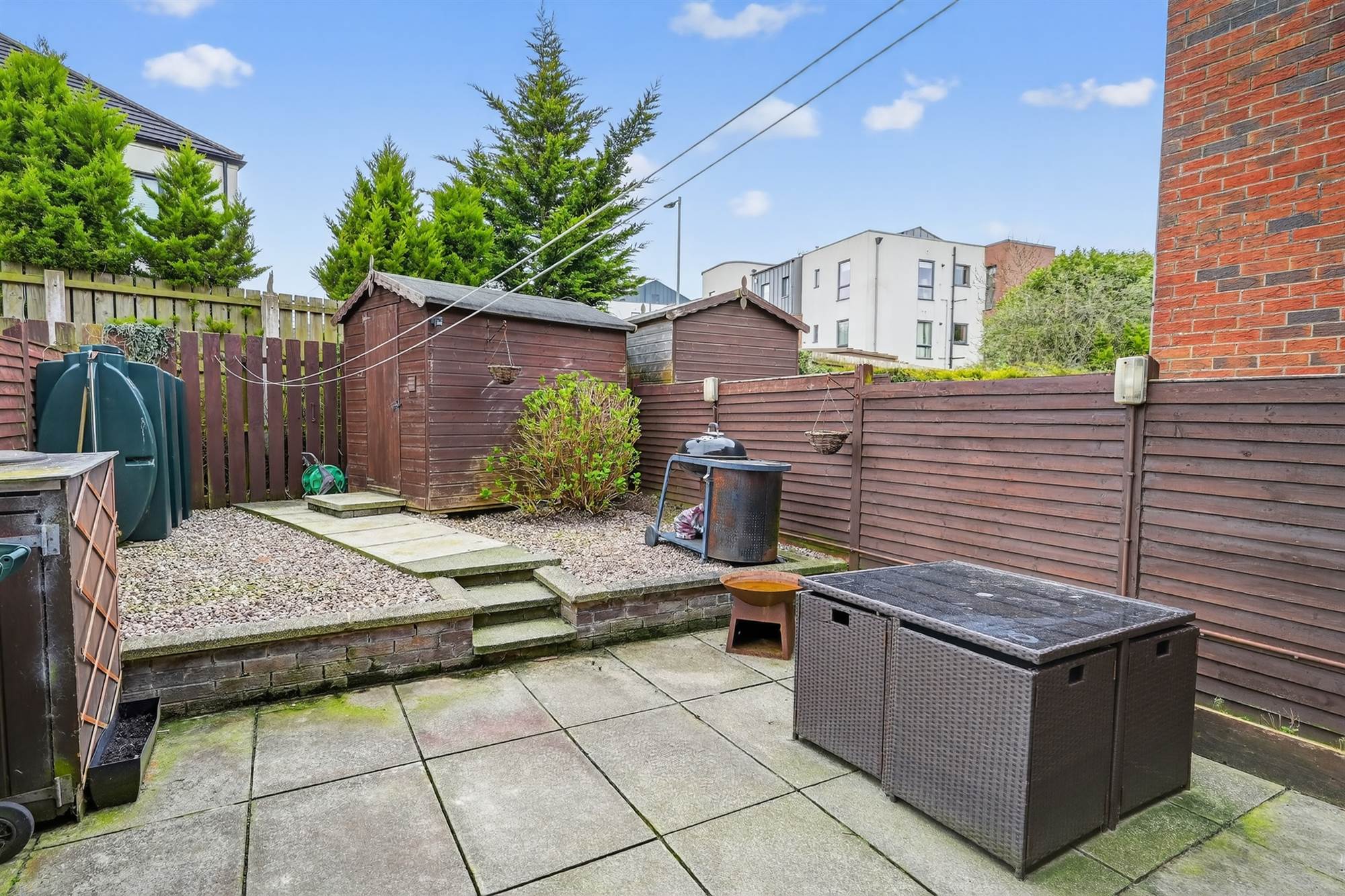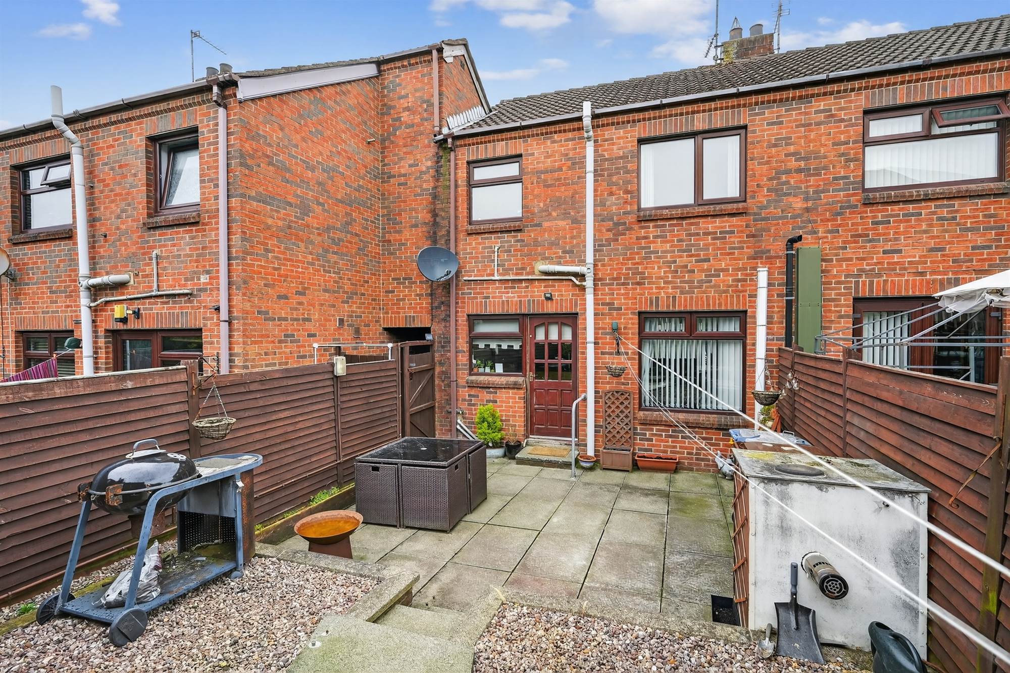 Enclosed rear garden with full southerly aspect, part in patio, raised patio area, access to oil tank and oil boiler. Bin storage. Alleyway to side for bins.