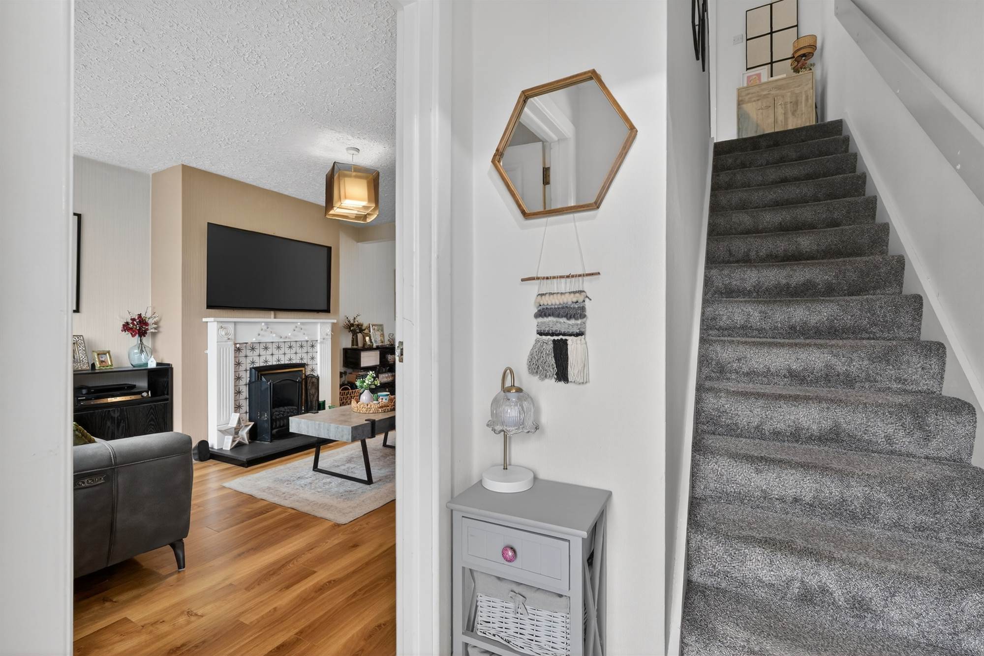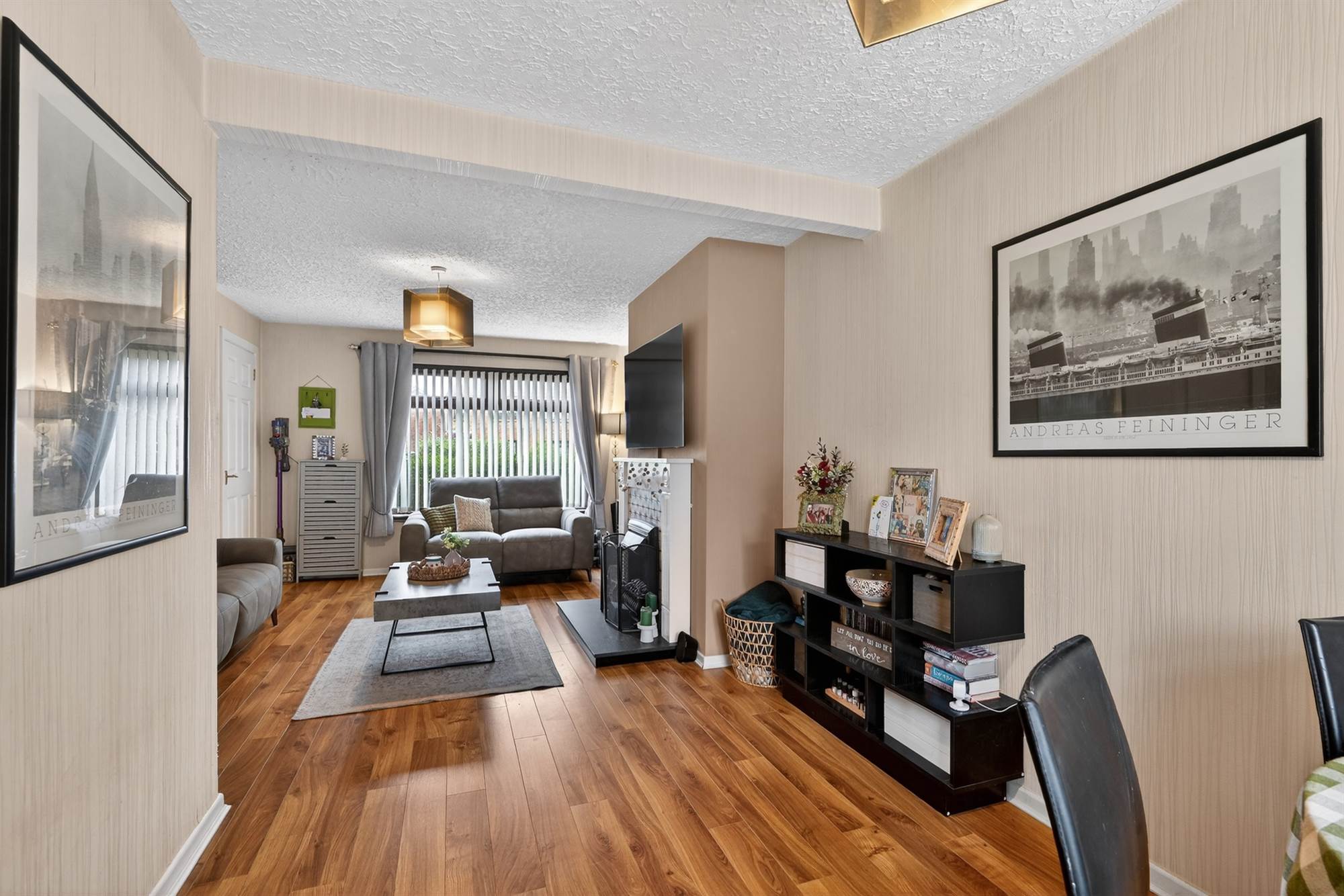 The accommodation is bright and well-proportioned, comprising a welcoming open-plan living dining area with under-stair storage and a modern fitted kitchen, ideal for everyday living and entertaining. Upstairs, there are three spacious bedrooms and a contemporary family bathroom with a white suite.
