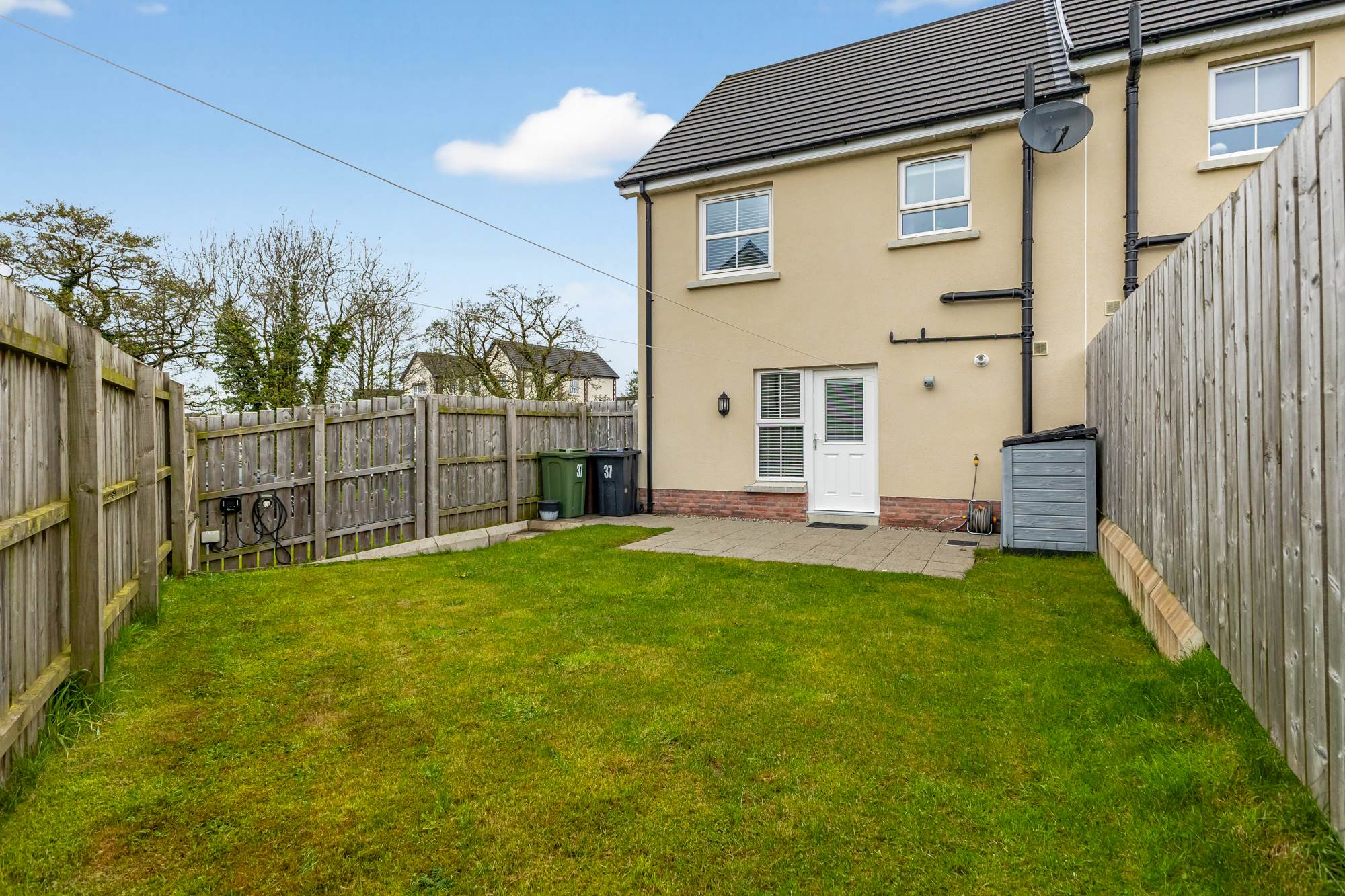 Driveway to the rear of the property. Enclosed gardens in lawn and patio area to the rear. Light and water tap.