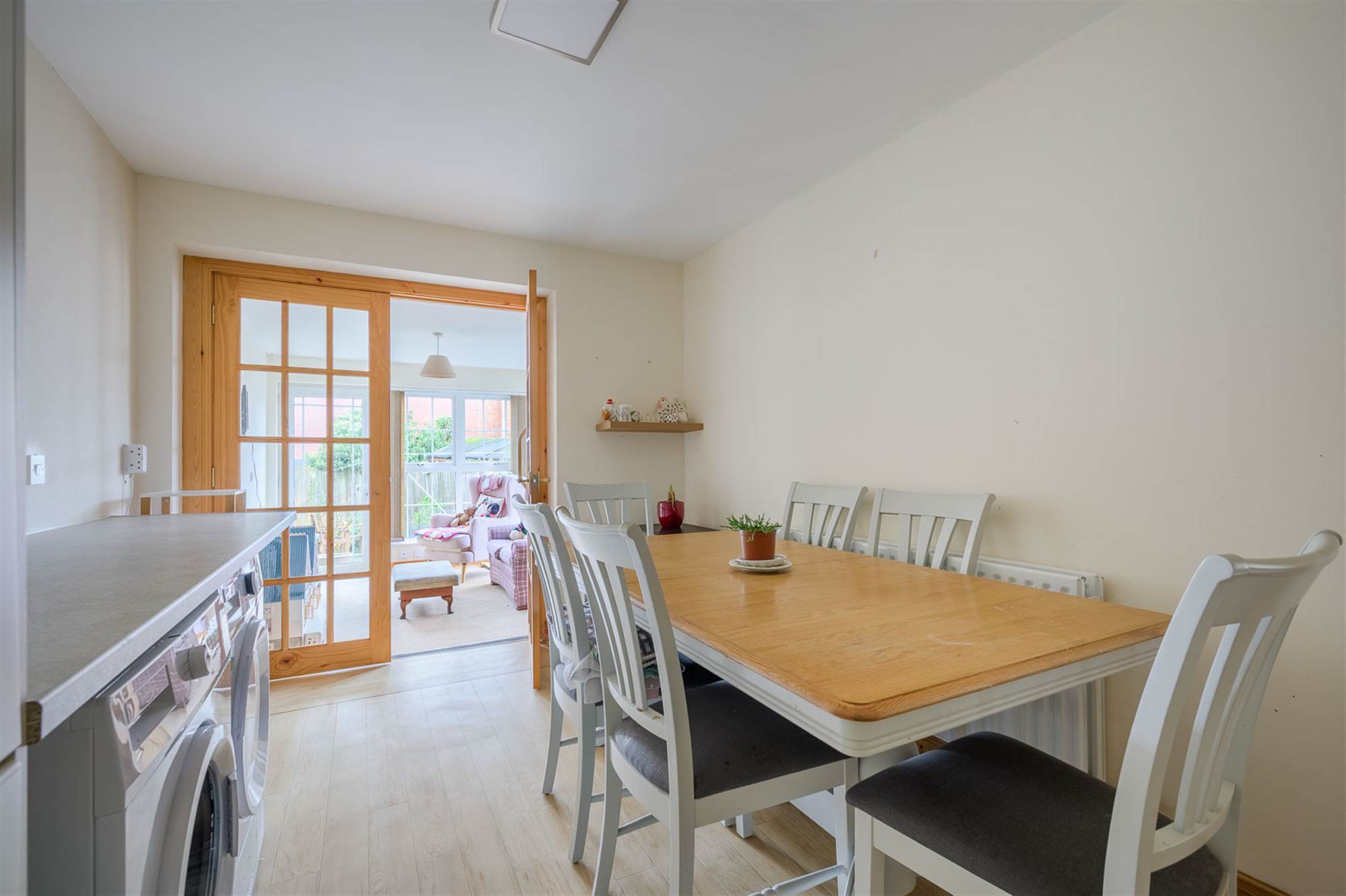 The accommodation comprises a welcoming entrance hallway with built-in storage, a bright and spacious living room leading to a rear hallway where a well-appointed kitchen diner provides ample space for cooking and dining, featuring modern units and integrated appliances.