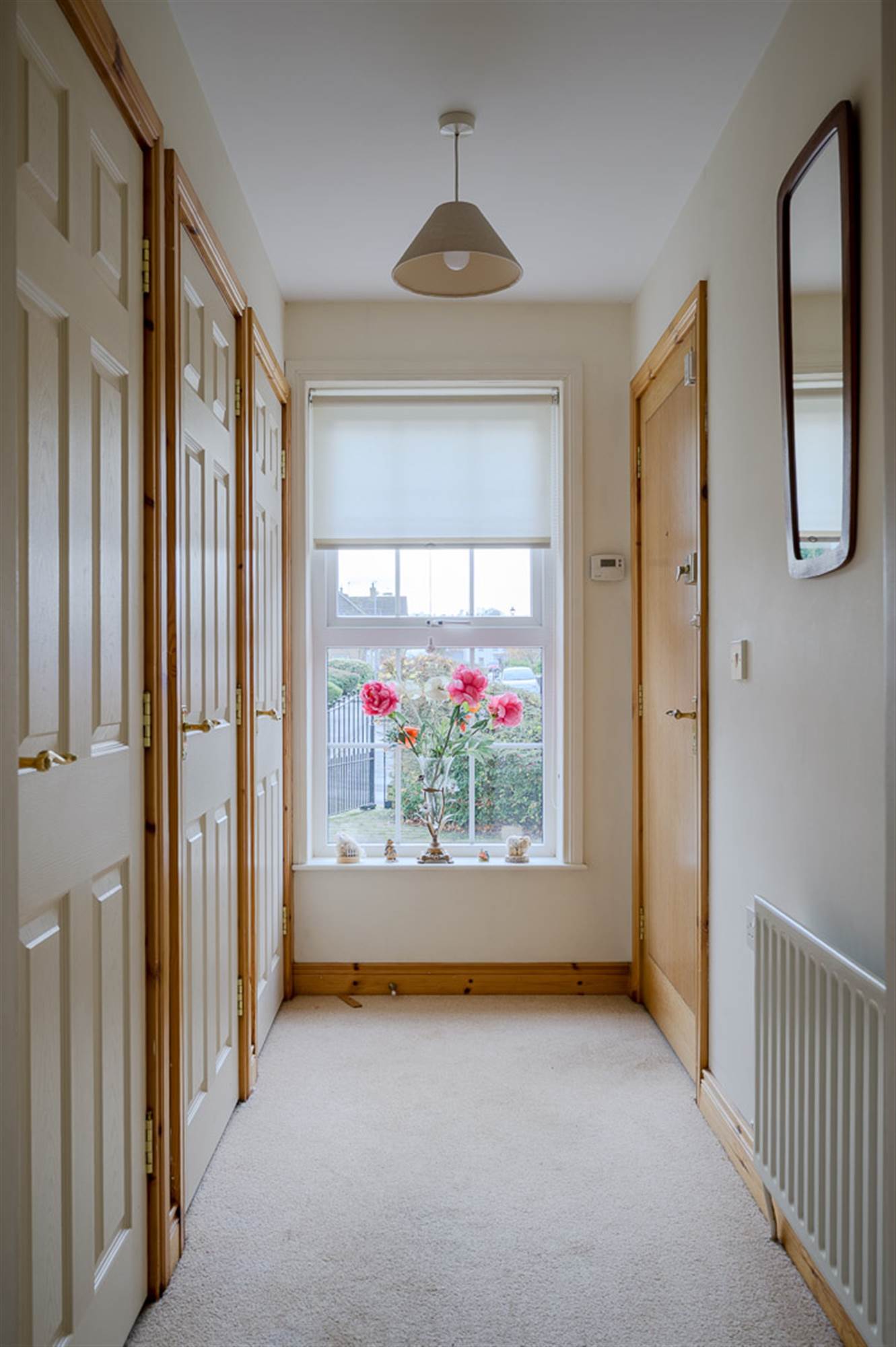 Picture window, outlook to front, three built in storage cupboards, one housing electric meter.