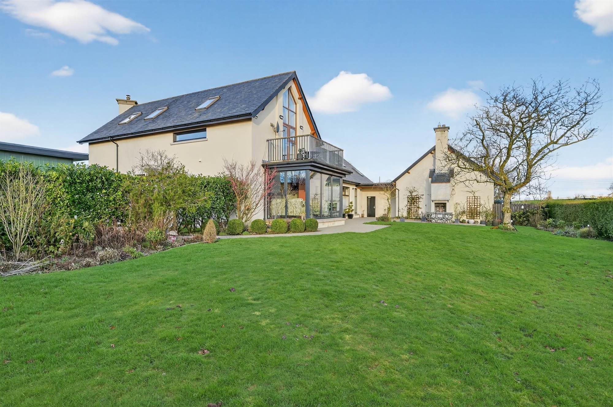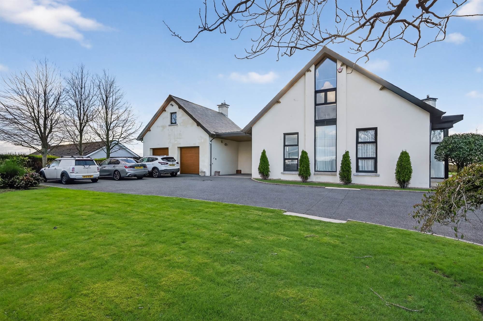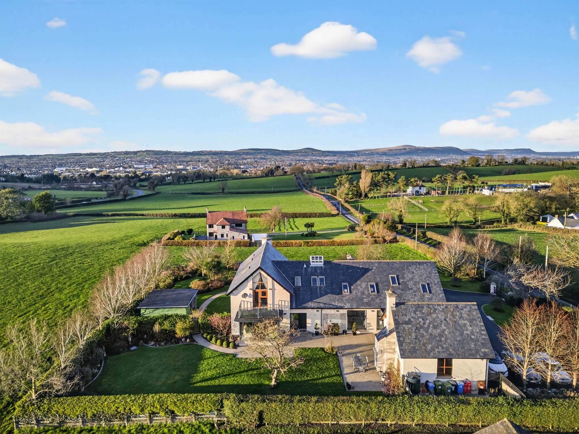 Tucked away in rolling countryside yet only minutes from Hillsborough and Lisburn, this exceptional detached home delivers a rare combination of architectural presence, privacy and panoramic views.