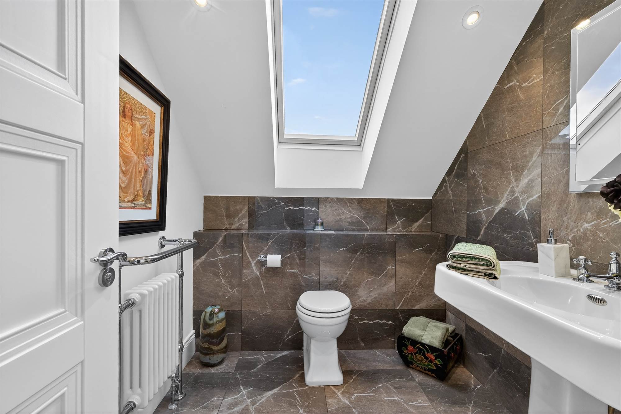Extensive mirrored slide robes and twin rooflights.