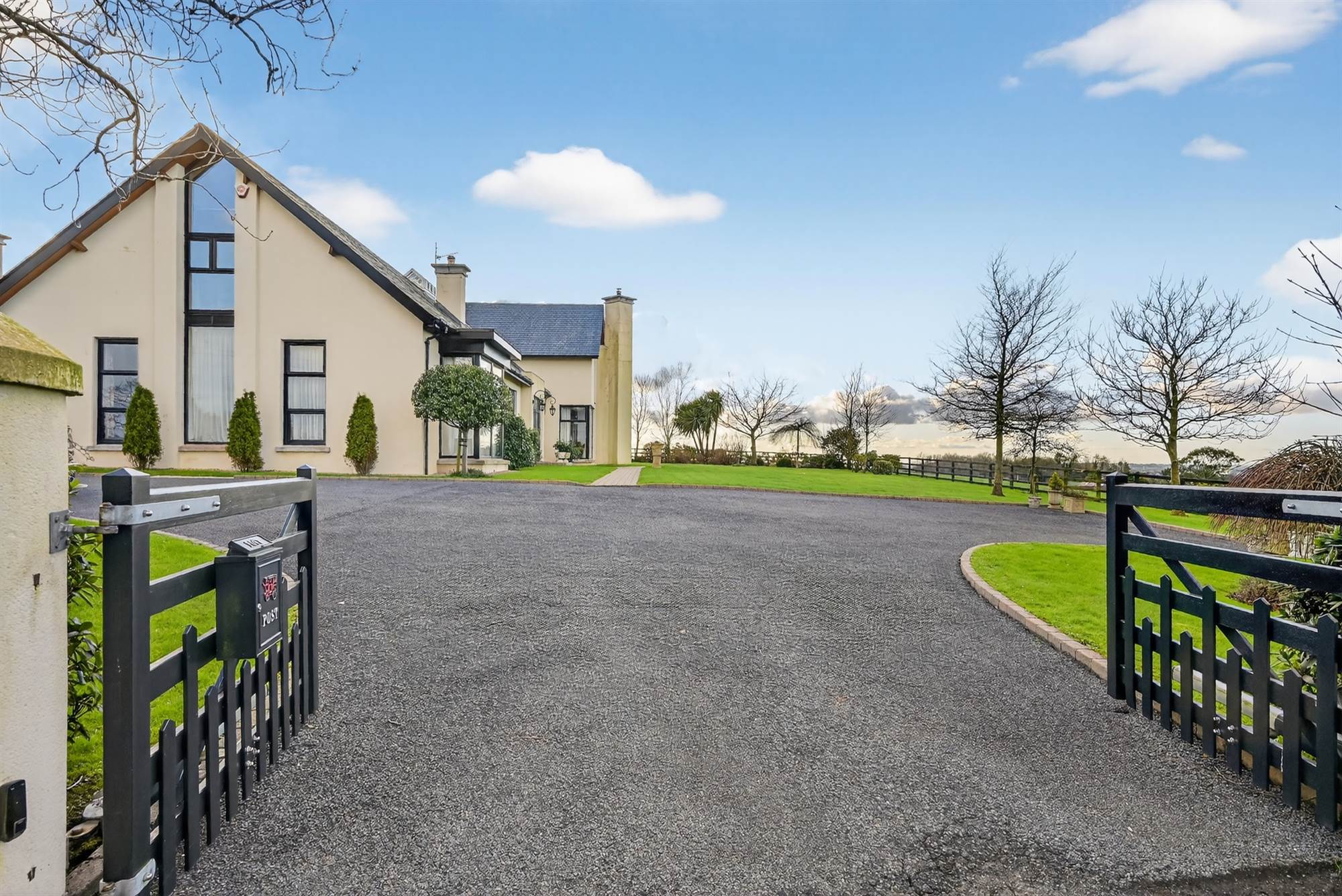 Secure Gated Entrance With Electric Gates, Sweeping Tarmac Driveway And Ample Parking