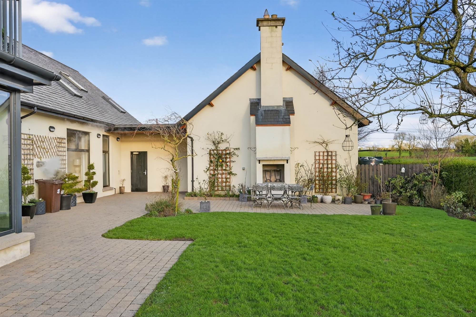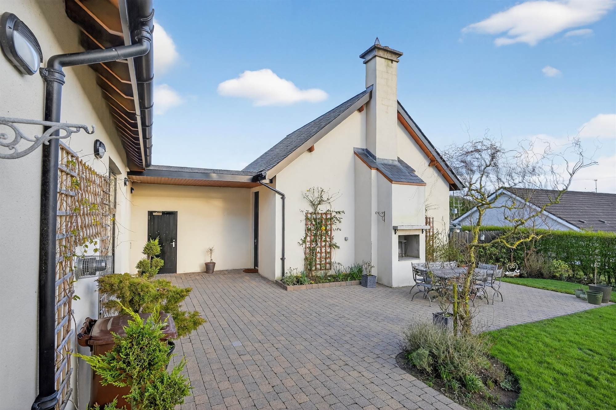 Occupying approximately 0.6 acre on an elevated site with mature plantings and sweeping lawns. Extensive surrounding patio areas ideal for outdoor entertaining, built in BBQ area. Remote-controlled gated entrance, generous tarmac driveway and ample parking.