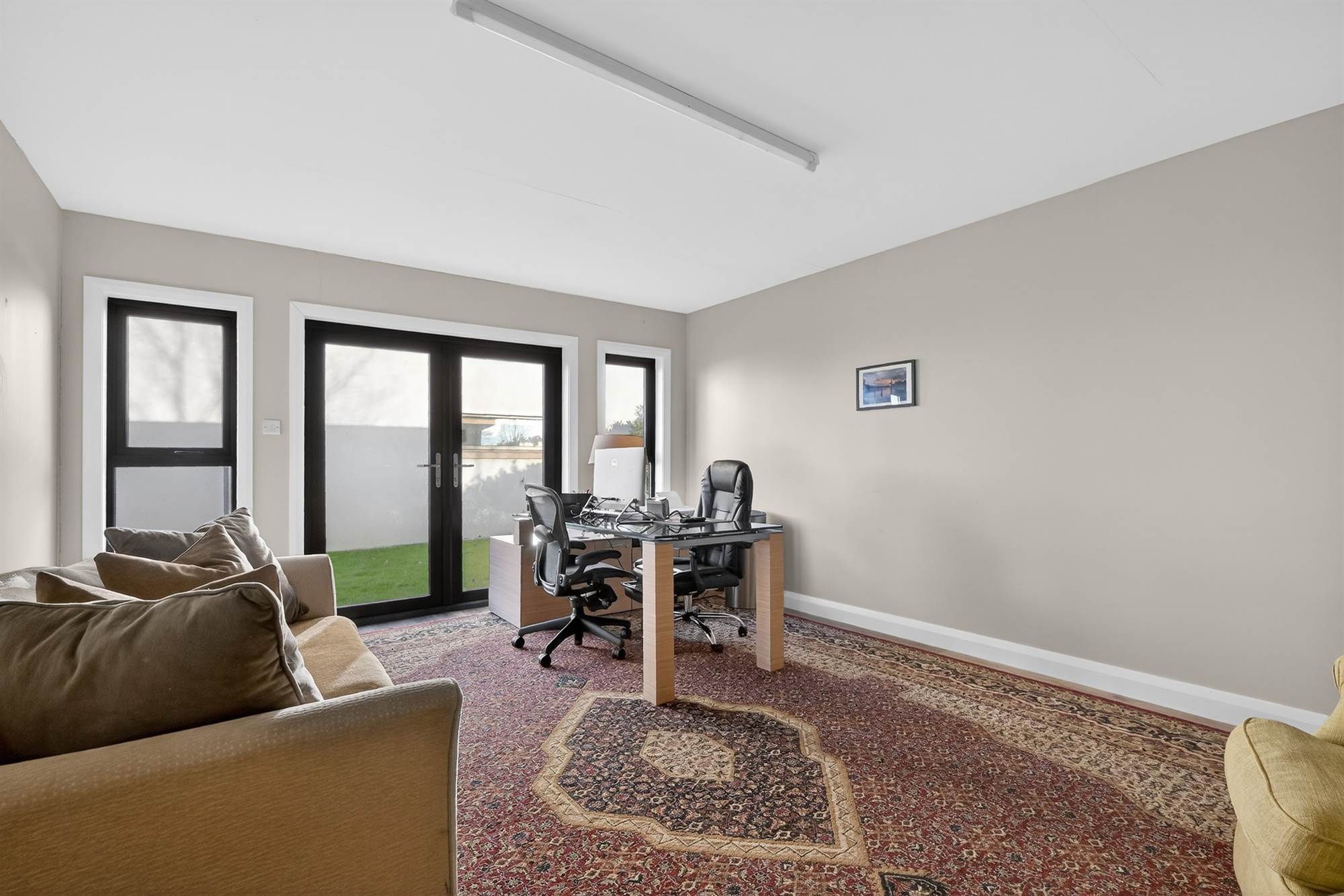 Double glazed, insulated and finished internally with adjoining store, equipped with light and power.