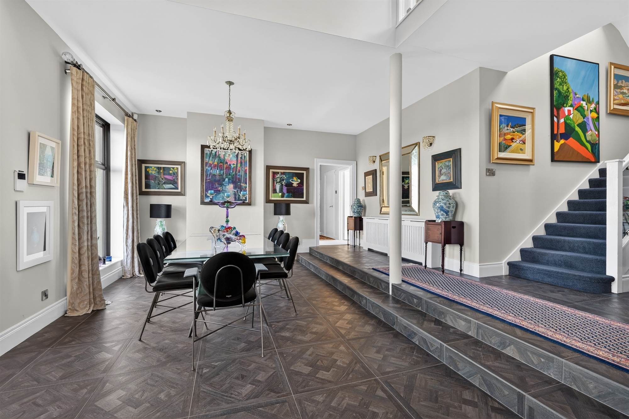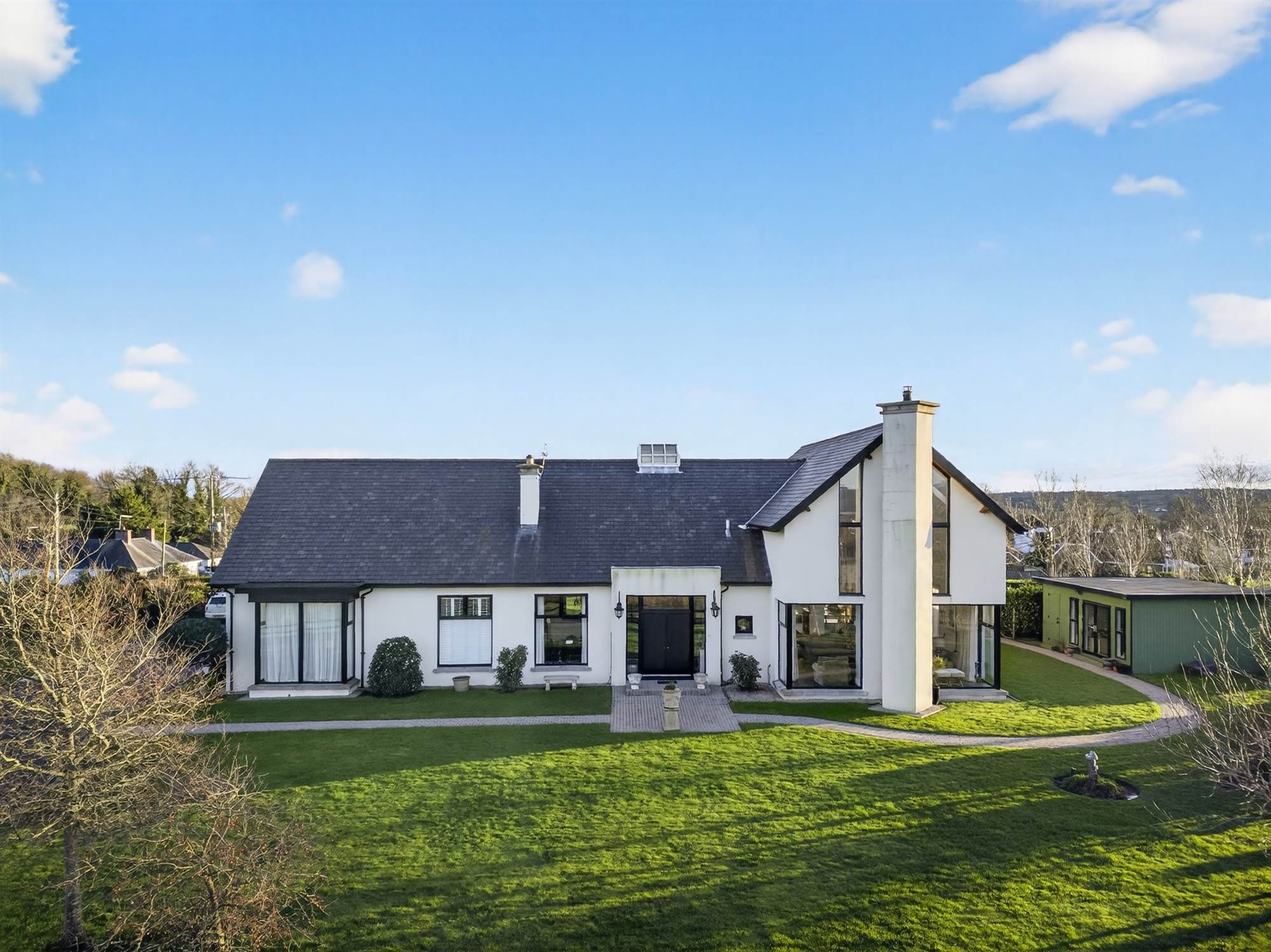 Individually designed by renowned architect Des Ewing, the property stands apart with its bold lines, striking proportions and thoughtfully crafted interior. The layout is both generous and adaptable, offering superb flexibility for modern family living, entertaining and home working alike. Large windows frame the surrounding landscape ensuring the views are never far from sight.