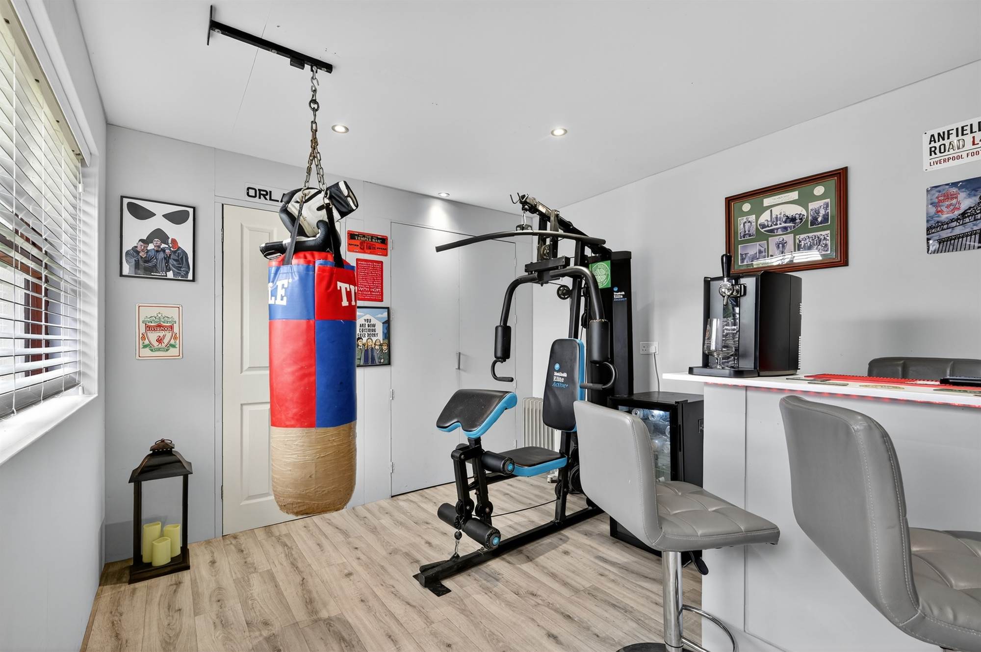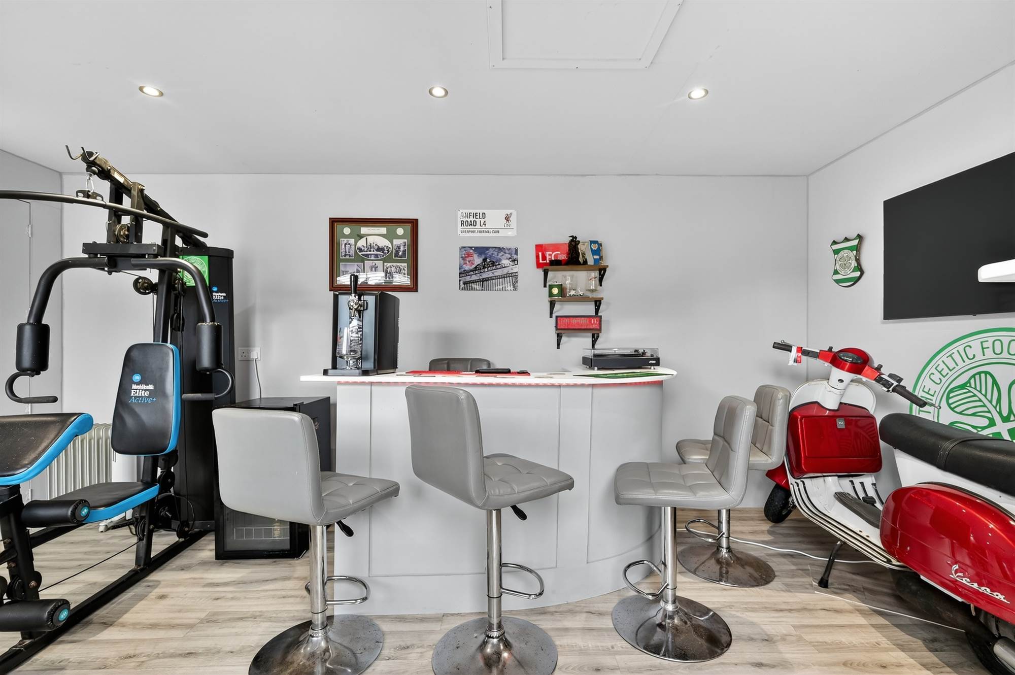 (at widest points). Access door to side and window. Low voltage spotlights. Vinyl flooring, bar area. Utility cupboard plumbed for washing machine.