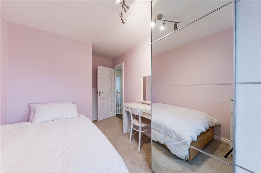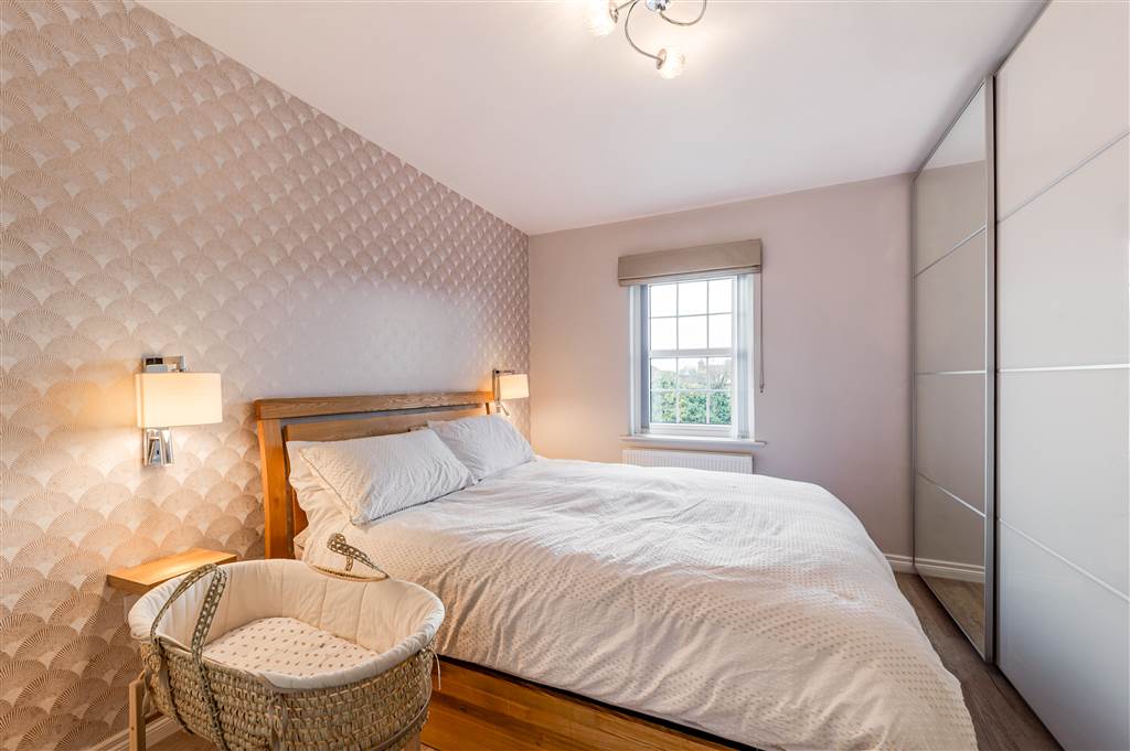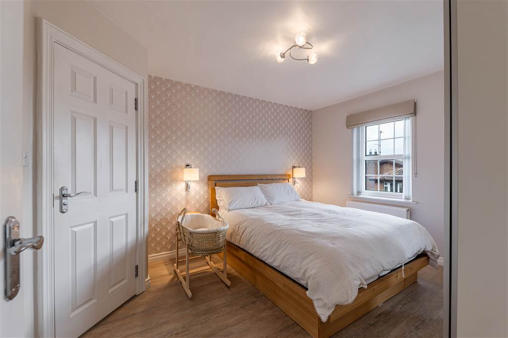 Laminate wood flooring, feature wall lights, built in wardrobe, double panelled radiator.