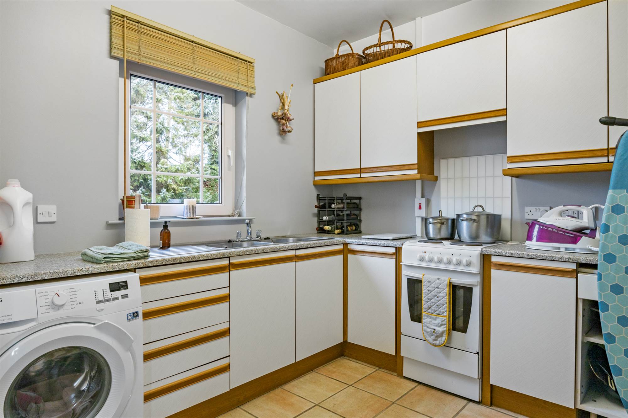 High and low level units, inset sink, plumbed washing machine, recess cooker