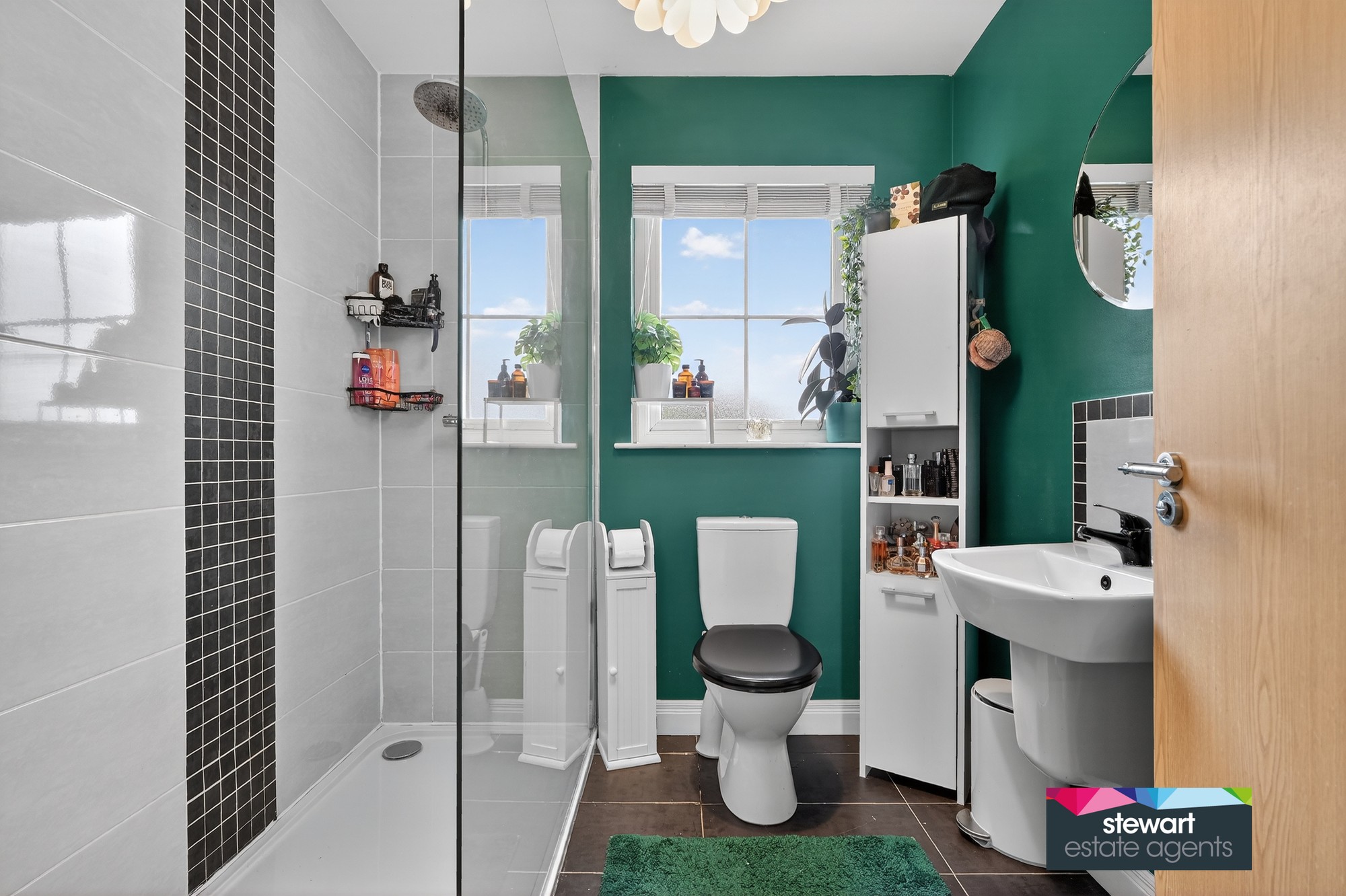 Shower room on the first floor with a contemporary style suite including a shower, WC and wash hand basin