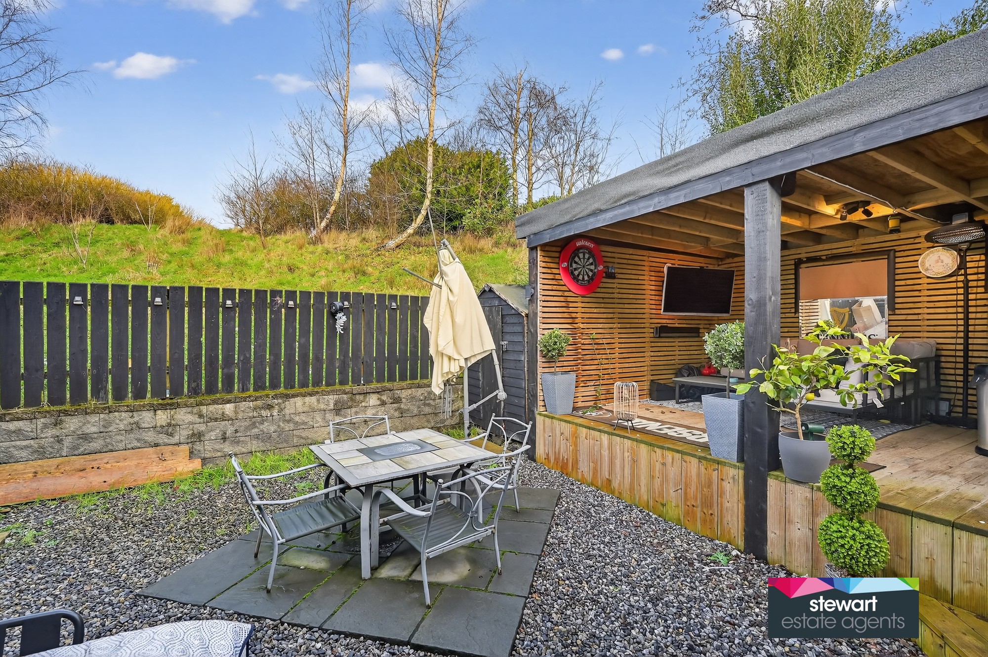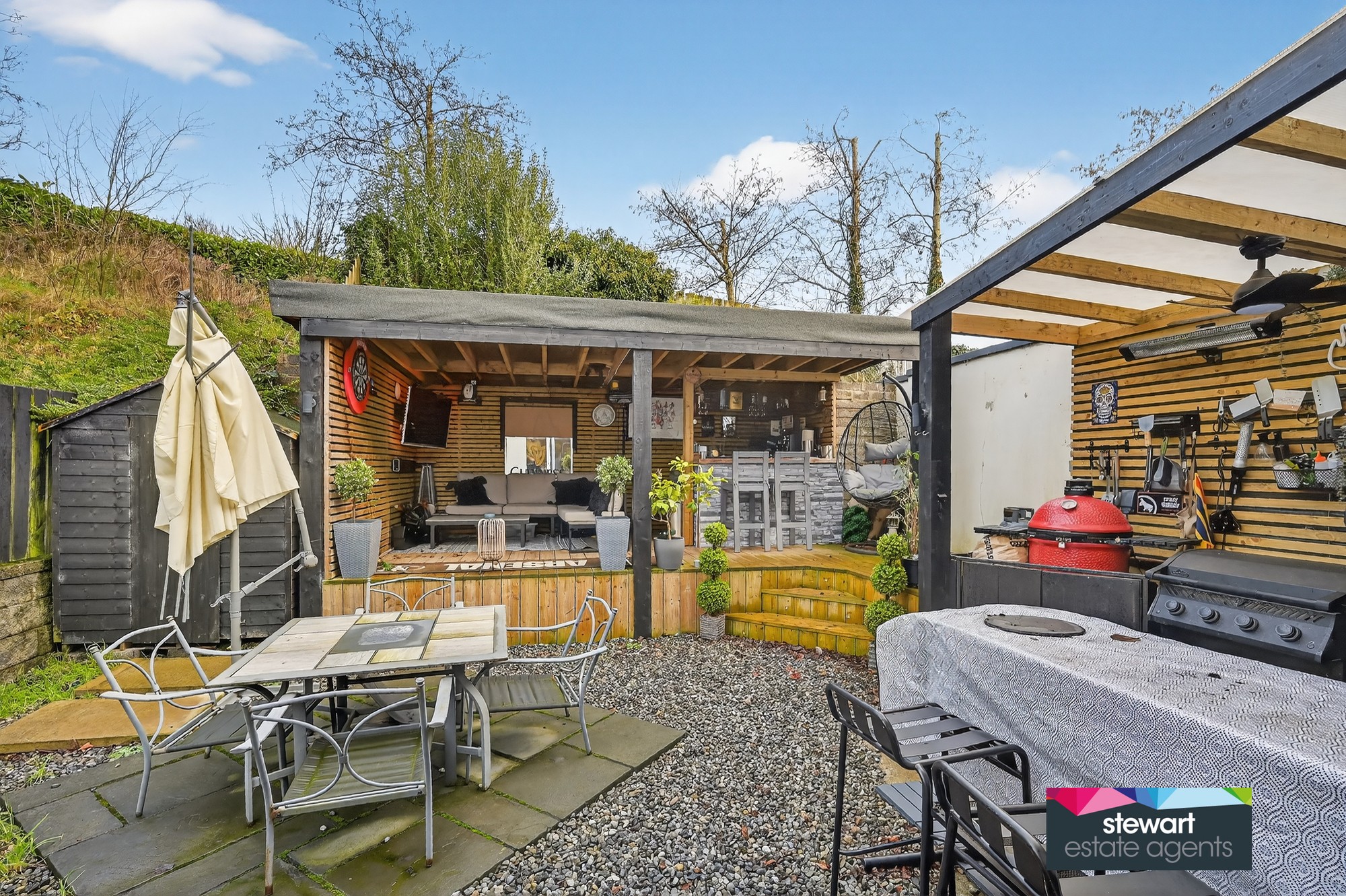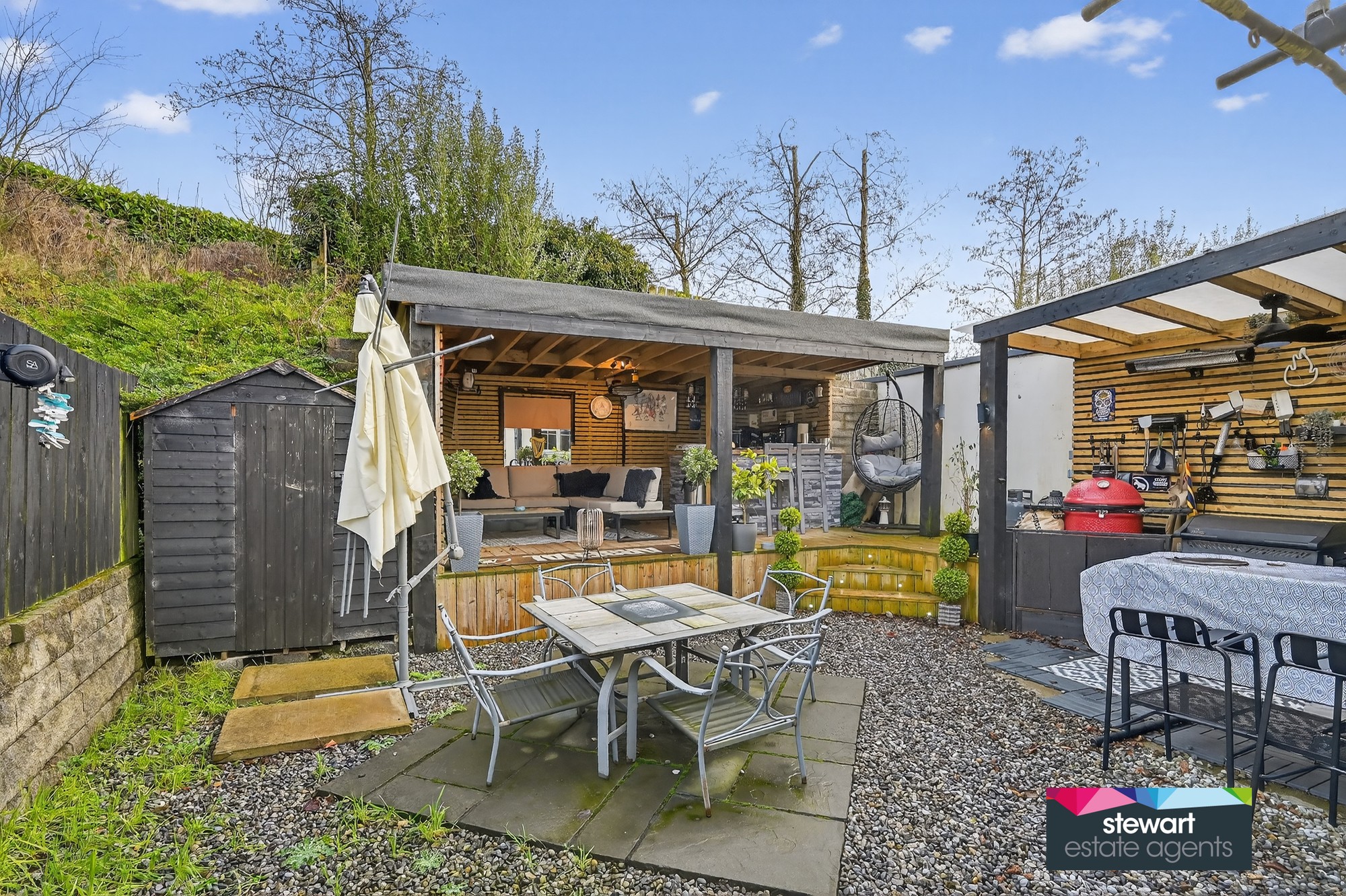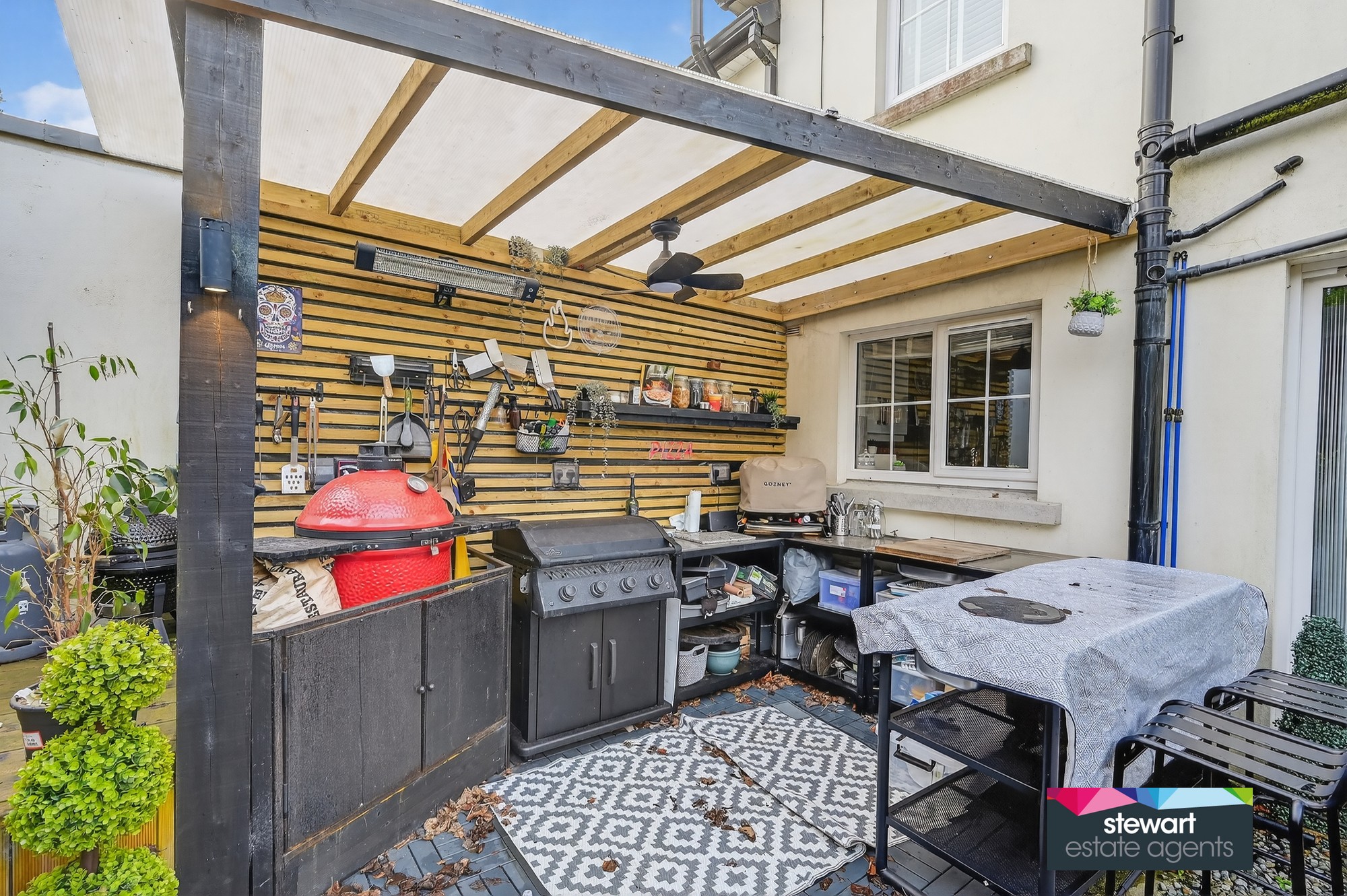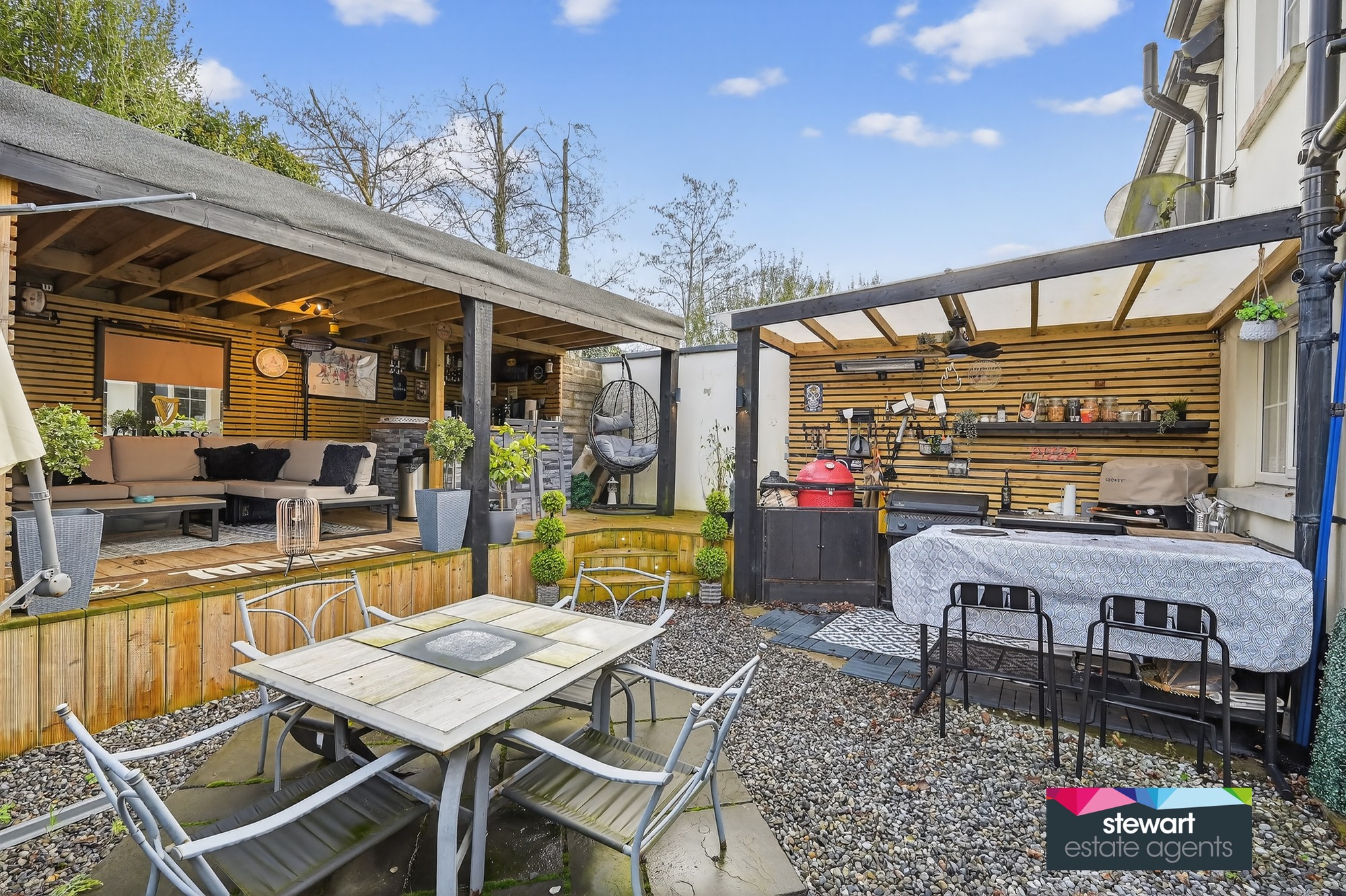Enclosed rear gardens with a private aspect having feature cover pergolas providing leisure areas for summer entertaining
