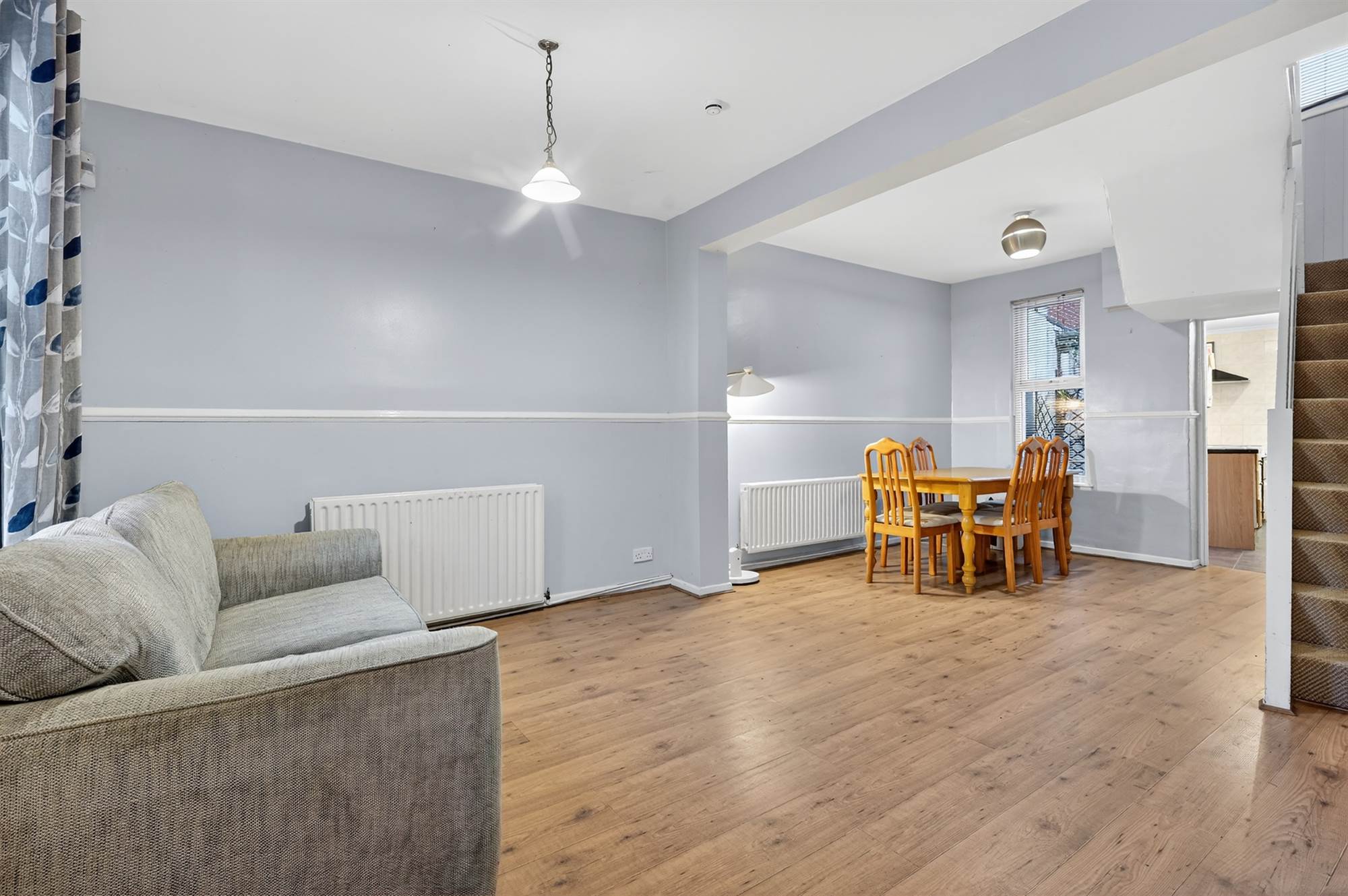 The property is bright and spacious, featuring an open-plan living area with a large lounge and dining space, seamlessly connected to a galley style kitchen with downstairs bathroom