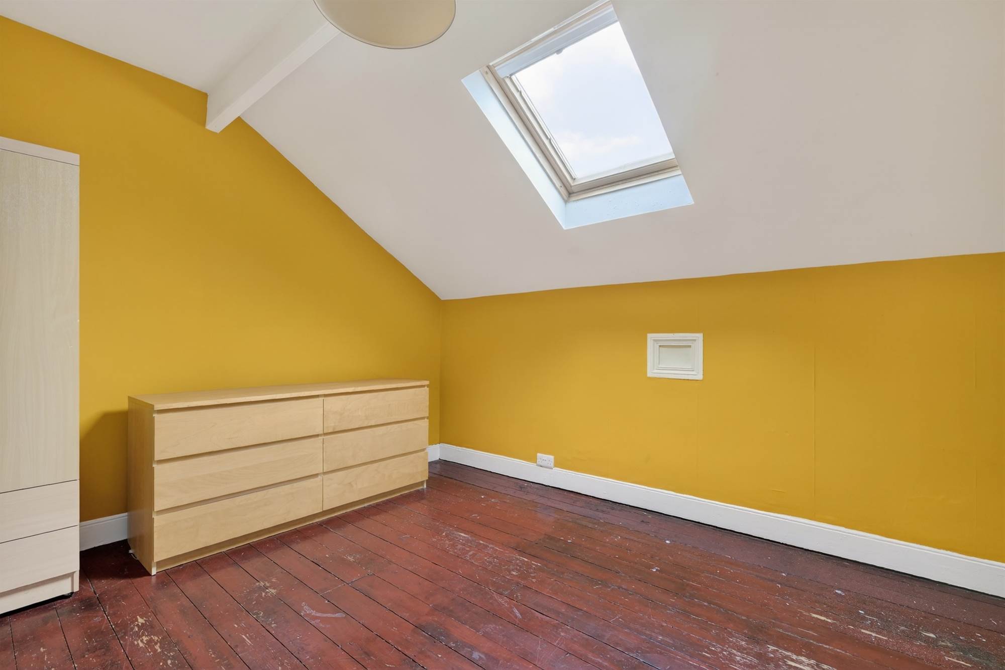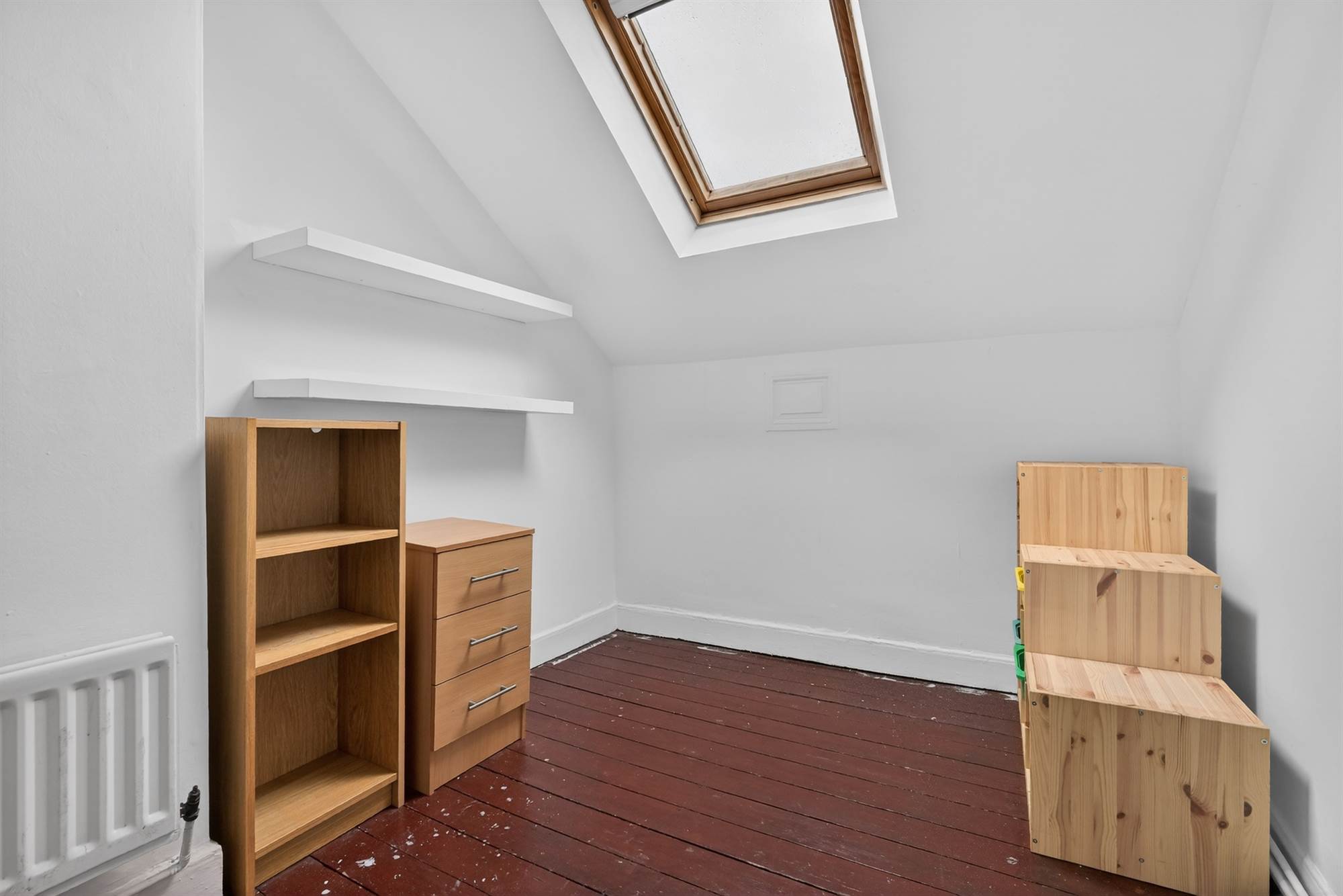 Wood strip flooring, velux window.