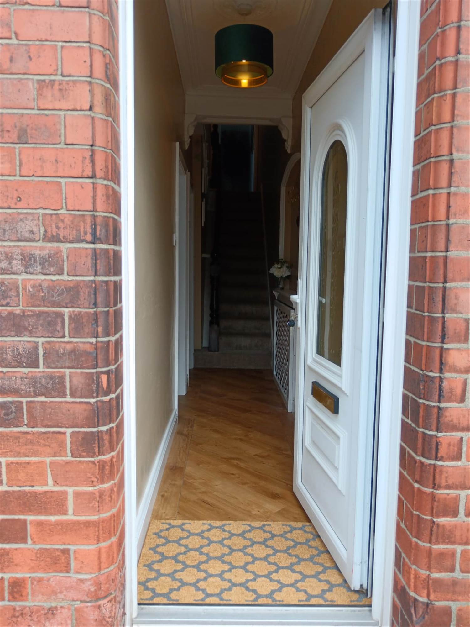 Upvc front door, ceiling cornicing.