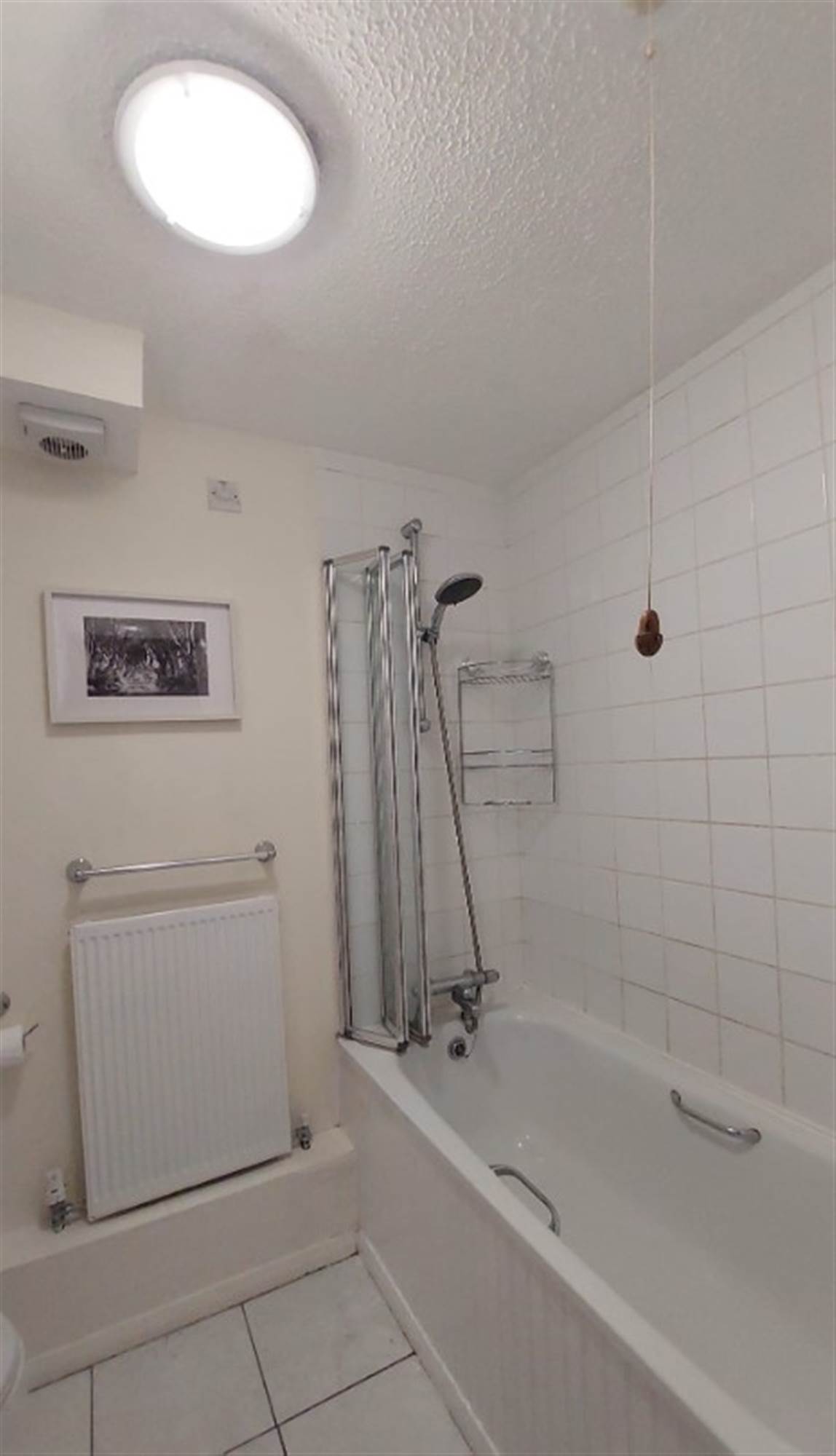 Panelled bath, shower above, low flush WC, pedestal wash hand basin