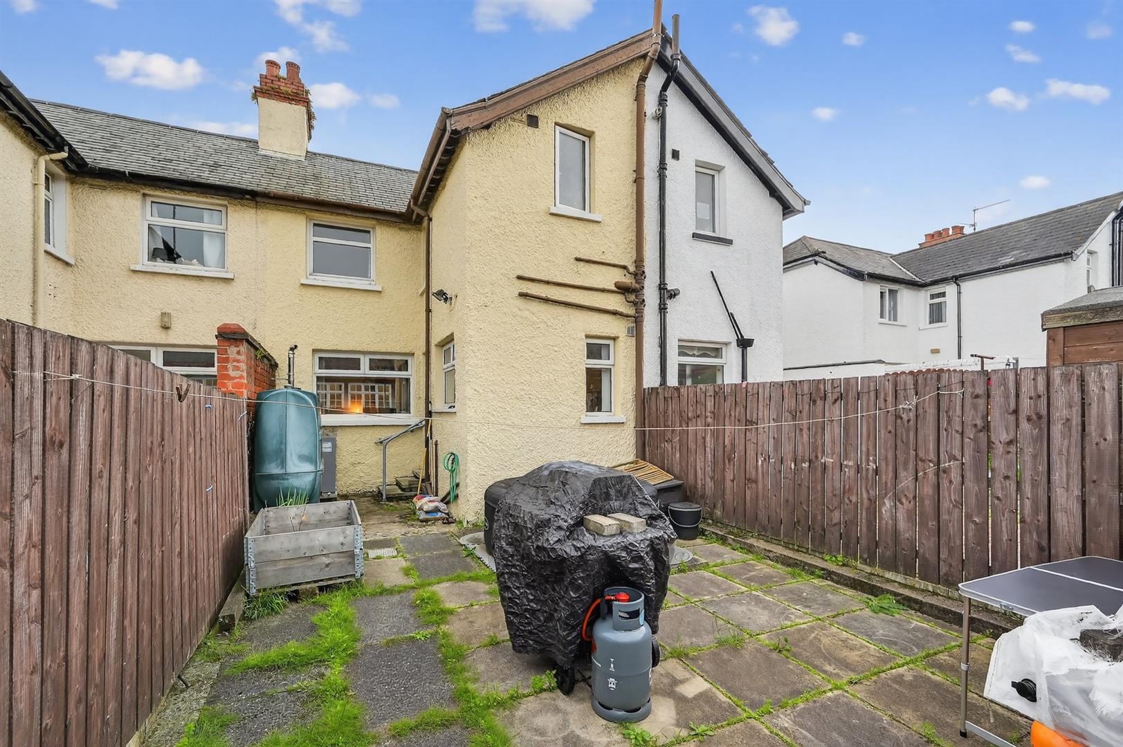 Enclosed south facing patio garden to rear. Small garden area to front.