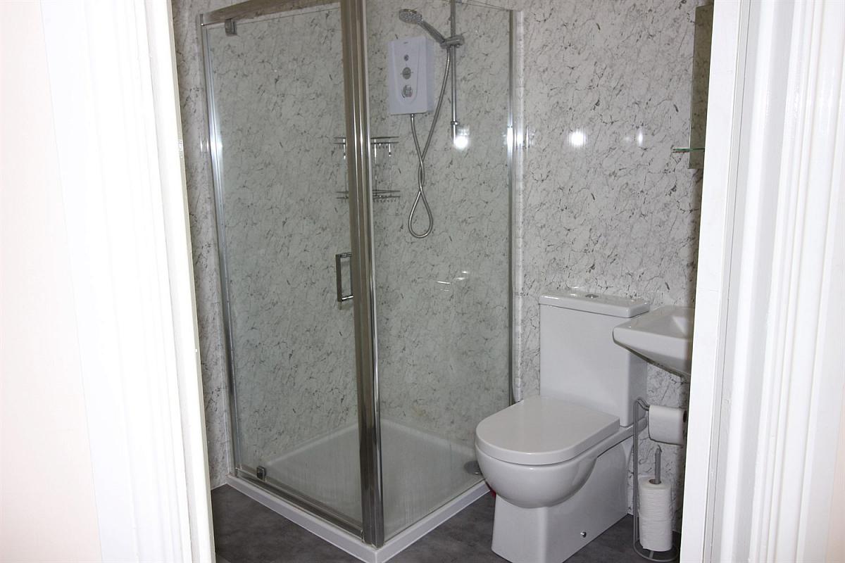 Shower cubicle, pedestal wash hand basin, close coupled w.c.