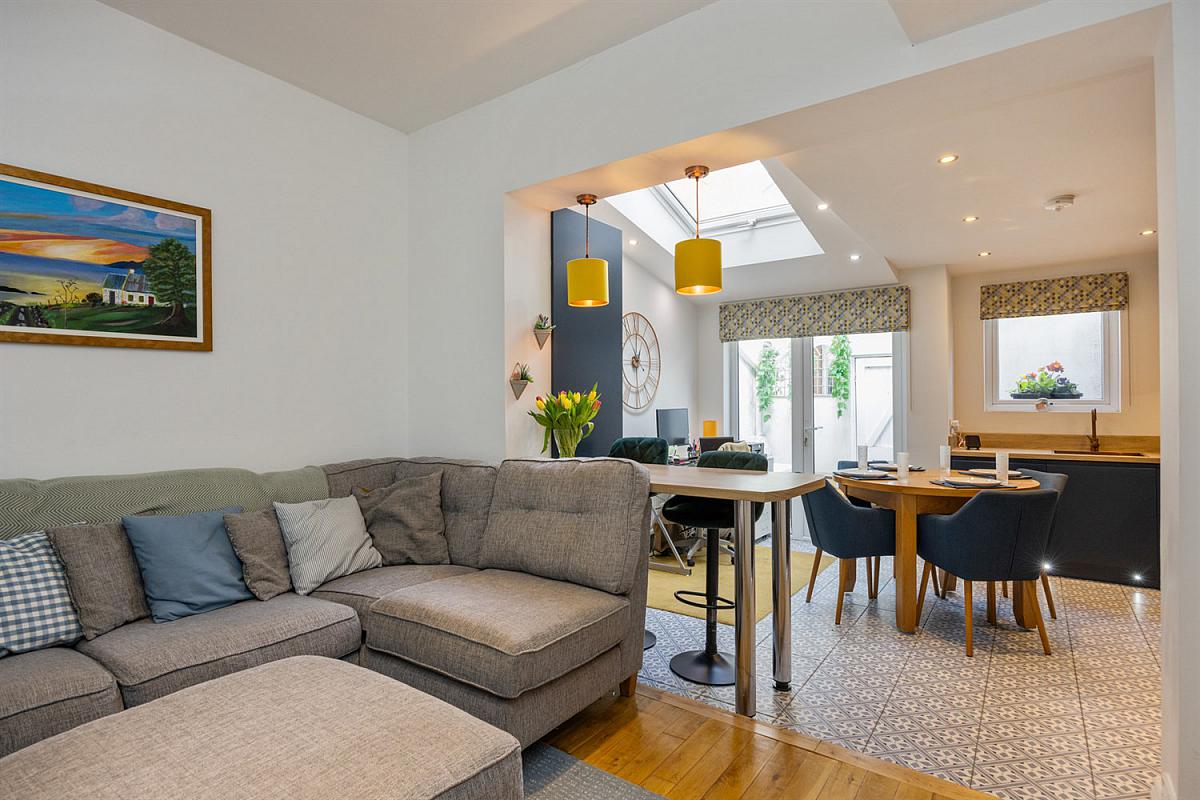 The accommodation briefly comprises; entrance hall with original cornicing and ceiling rose, Lounge with attractive detailed cast iron fireplace and bay window, living room which is open plan to the stunning extended kitchen and dining area with bespoke `Stori' kitchen units. On the first floor there is 2 good sized bedrooms and family bathroom. The property benefits from gas fired central heating, `Tado' smart heating system and double glazed windows. Externally there is a front forecourt garden with sitting area and painted and decked rear courtyard.