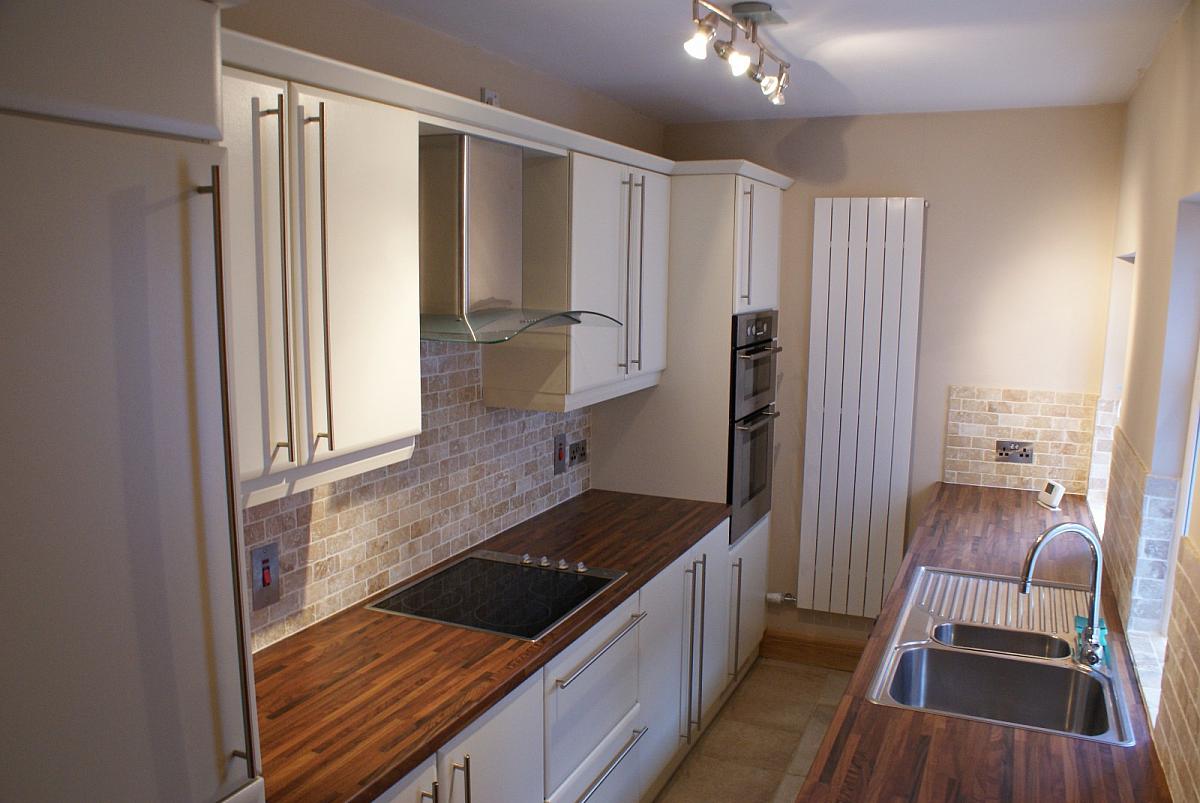 Shaker style fitted kitchen with an excellent range of high and low level units, built in double oven and 4 ring hob, integrated fridge freezer, washer dyer, ceramic tiled floors.