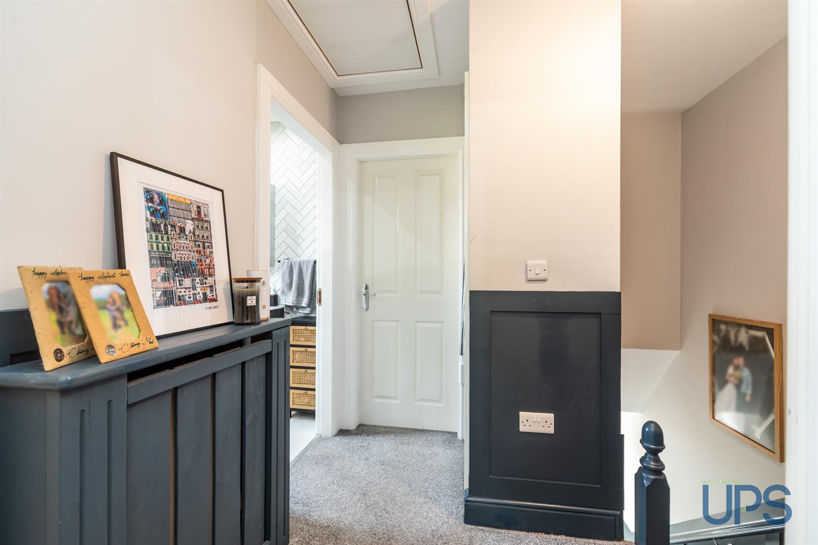 Access to roof space via a pull-down ladder on the landing, with flooring for storage.