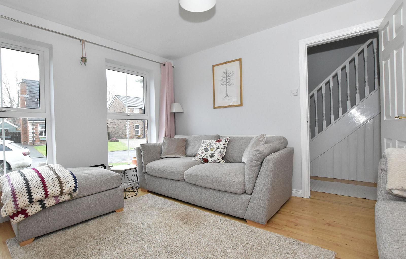 A lovely semi detached house located within Glenbrae, a development in the popular Limetree Avenue / Knockmore Road area of Lisburn.A lovely semi detached house located within Glenbrae, a development in the popular Limetree Avenue / Knockmore Road area of Lisburn.With superb accessibility to Lisburn city centre and access routes to Belfast, this property further benefits from convenience to great local amenities and schools.The accommodation briefly comprises entrance hall, lounge with open fire, modern kitchen with dining area, principal bedroom with ensuite shower room, 2 further bedrooms and family bathroom. Outside there is a pebbled driveway and gardens to the front and rear. This lovely home also benefits from oil central heating (new boiler installed October 2023) and PVC double glazing. Viewing is highly recommended by appointment.GROUND FLOOR : Entrance hall Painted hardwood entrance door. Understairs storage. Laminate flooring. Double panelled radiator.Lounge w: 3.61m x l: 4.07m (w: 11' 10" x l: 13' 4")Feature painted fireplace with open fire, slate hearth. Laminate flooring. Single panelled radiator.Kitchen/dining w: 3.56m x l: 5.67m (w: 11' 8" x l: 18' 7")Good range of painted high and low level units. 1.5 bowl stainless steel sink unit, mixer tap. Integrated ceramic hob, electric oven and stainless steel extractor fan. Plumbed for dishwasher. Plumbed for washing machine. Wine rack. Breakfast bar. Dining and seating areas. Part tiled walls. Laminate flooring. 2 double panelled radiators. Sliding patio doors to rear garden. FIRST FLOOR: Landing Access hatch to roofspace.Hot press with copper cylinder and immersion heater. Bedroom 1 w: 3.18m x l: 3.54m (w: 10' 5" x l: 11' 7")Single panelled radiator.En-suite Tiled shower enclosure with 'Triton' electric shower. Pedestal wash hand basin, mixer tap. Low flush WC. Extractor fan. Bedroom 2 w: 2.68m x l: 3.48m (w: 8' 10" x l: 11' 5")Single panelled radiator. Bedroom 3 w: 2.46m x l: 2.9m (w: 8' 1" x l: 9' 6")Built in wardrobe. Laminate flooring. Single panelled radiator. Bathroom w: 2.2m x l: 2.38m (w: 7' 3" x l: 7' 10")Panelled bath with mixer tap and shower fitting. Pedestal wash hand basin, mixer tap. Low flush WC. Part tiled walls. Extractor fan. Single panelled radiator. Outside Pebbled driveway. Front garden laid in lawn. Gate to rear garden.Enclosed rear garden laid in lawn with paved and pebbled paths. Patio area. Timber perimeter fencing. PVC oil storage tank. Oil fired boiler in Kabin Pak housing. Required info under Trading Standards Guidance TENUREWe have been advised the tenure for this property is leasehold, we recommend the purchaser and their solicitor verify the details.RATES PAYABLEDetails from the LPSNI website - estimated domestic rate bill £1091.76