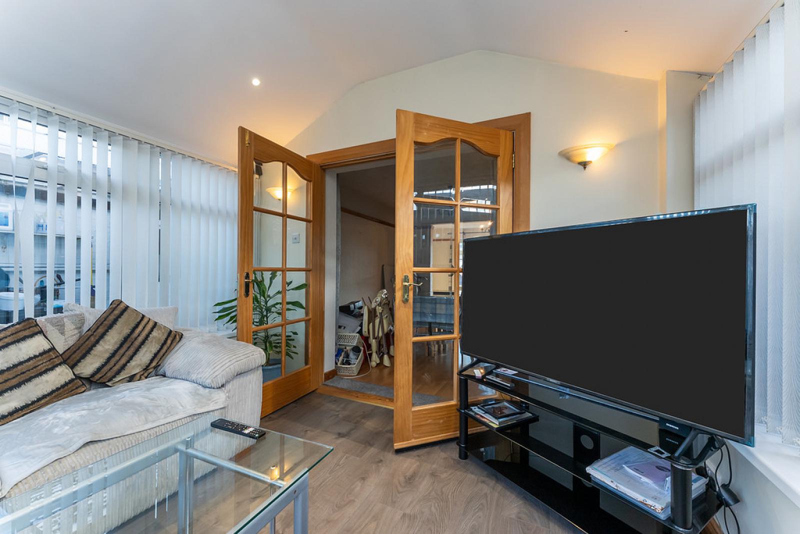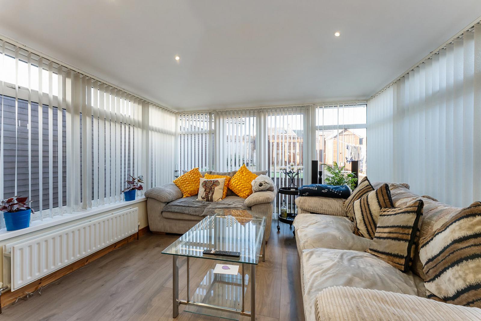 SUN ROOM 12' 5" x 11' 1" (3.78m x 3.38m) Laminate wood effect floor, uPVC double glazed patio door to rear.