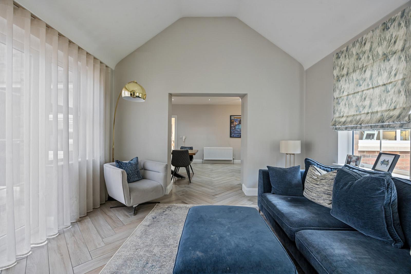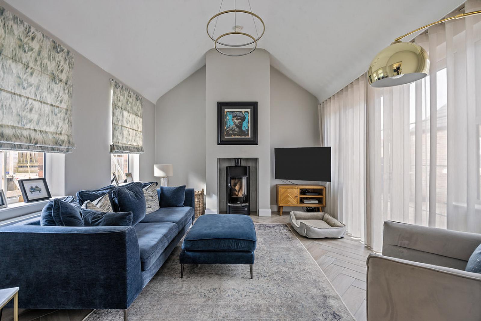The ground floor centres around a superb open plan kitchen with a range of high quality fitted units and integrated appliances, flowing into a magnificent sunroom with a feature wood burning stove and vaulted ceiling. A beautifully appointed lounge with bespoke storage and a second stove, along with a spacious family room, utility room and WC, complete the ground floor.