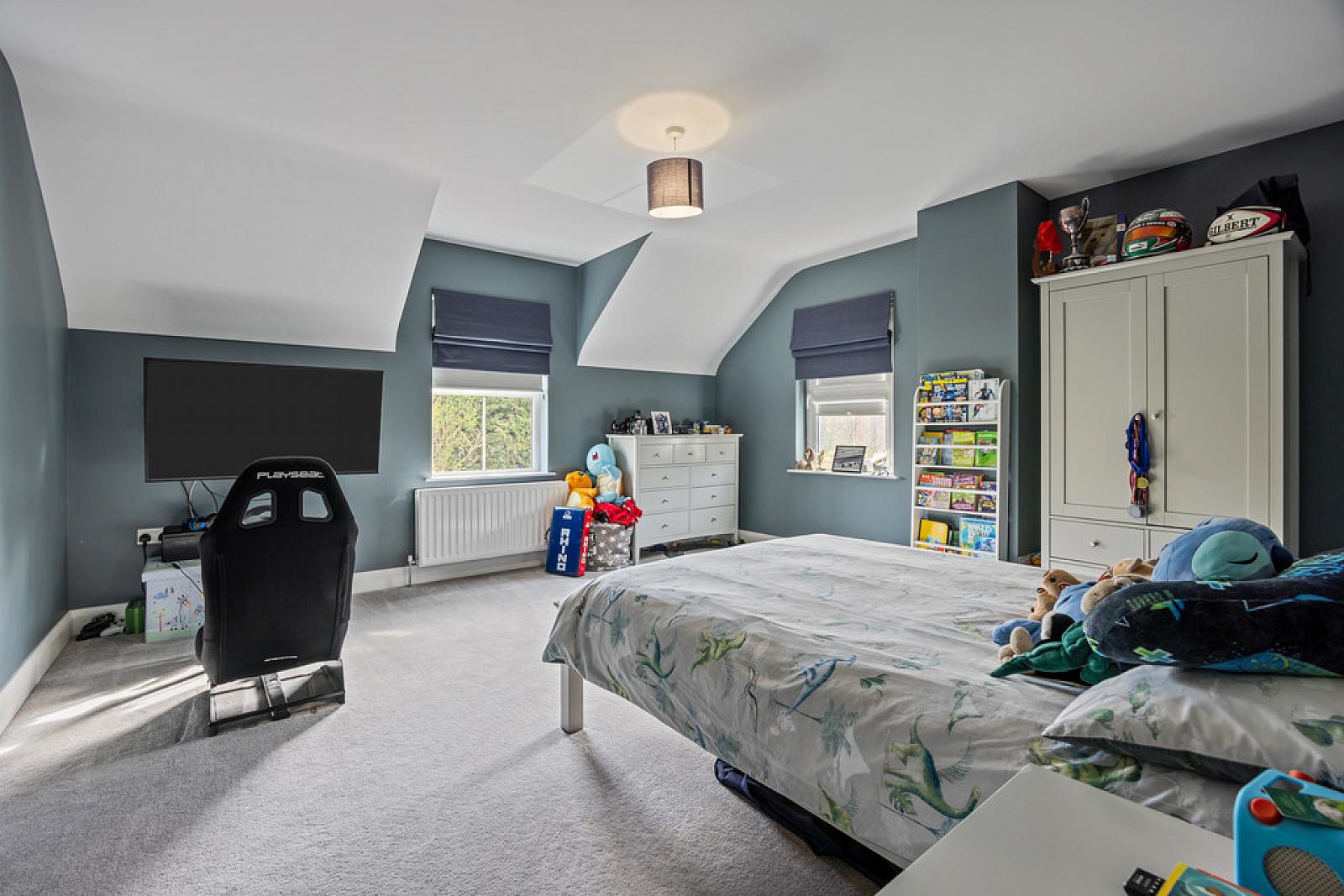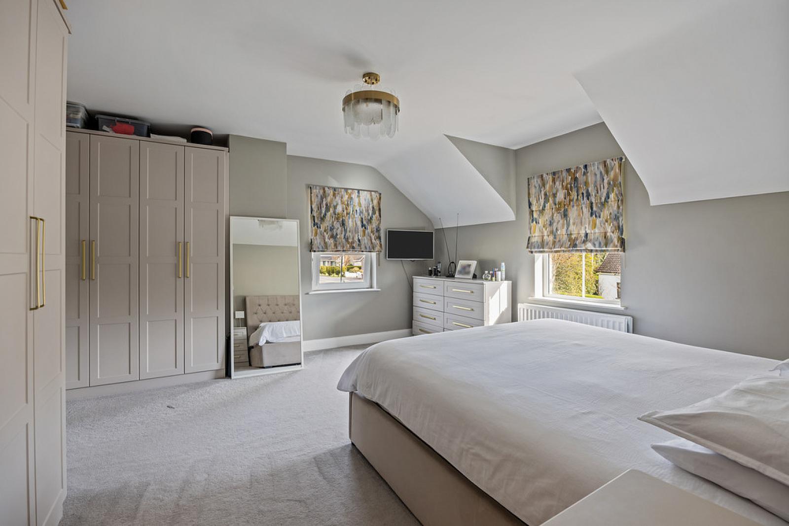 Upstairs comprises four well-proportioned bedrooms. The principal bedroom benefits from an ensuite and built in wardrobes, with a connecting door to the fourth bedroom, making it ideal as a nursery or home office. The generous landing offers additional space for study or seating.