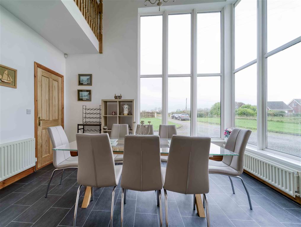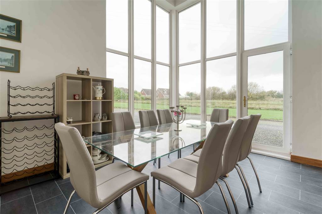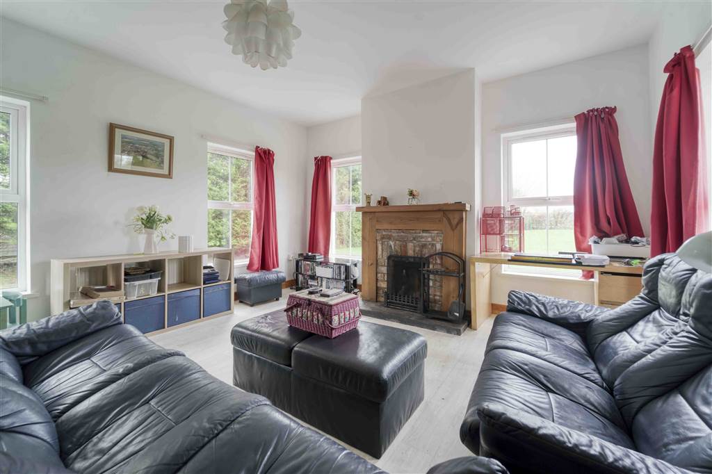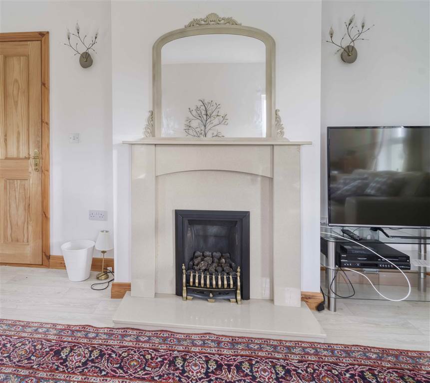 Fireplace containing gas fire. Vinyl planked flooring. Five windows overlooking garden and countryside.