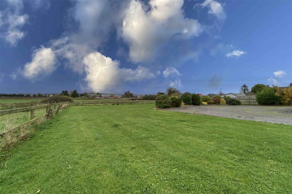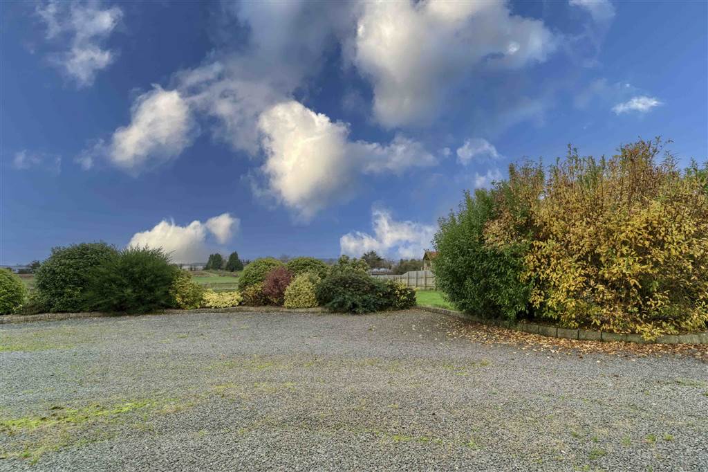 Large spacious garden with lawns to either side of driveway. Gravel driveway with parking areas to front and rear. Lawn with shrub area to rear. Gravel side area with oil-fired boiler and oil tank. Outside lighting and water tap.