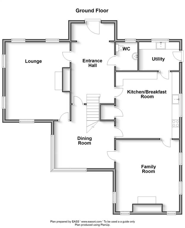 Ground Floor: Spacious reception hall, cloakroom (WC and wash hand basin), lounge with fireplace, dining room, family room with fireplace, large kitchen with dining area and utility room.