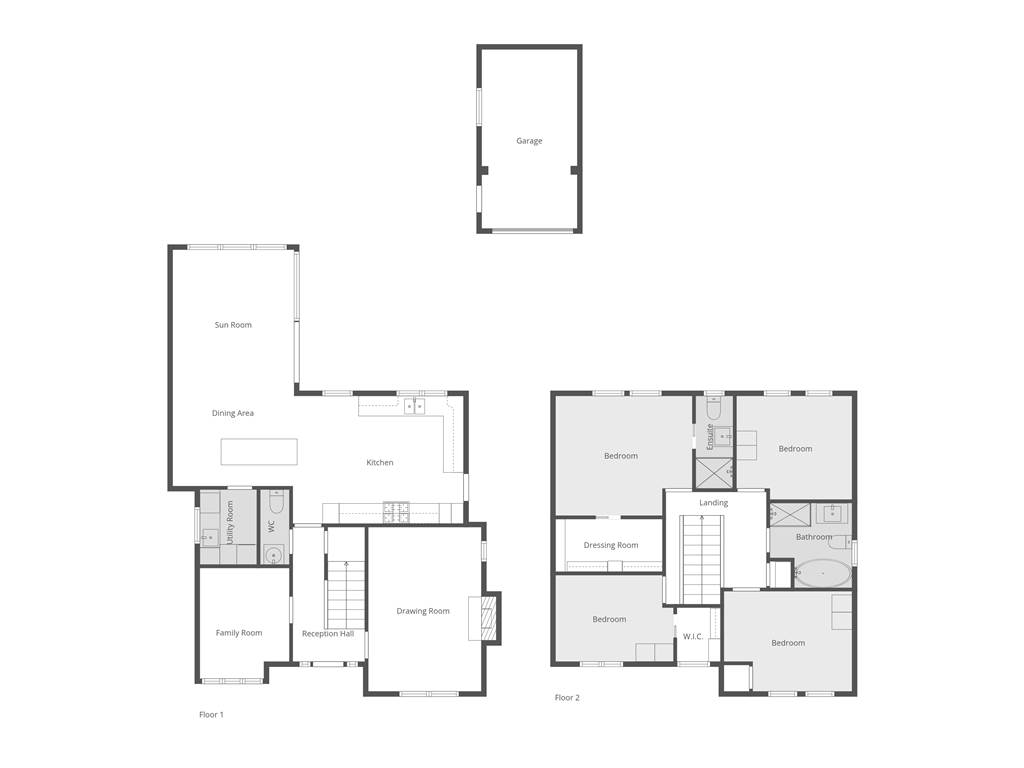 First Floor - Four bedrooms - main bedroom with dressing room and ensuite shower room and deluxe bathroom.