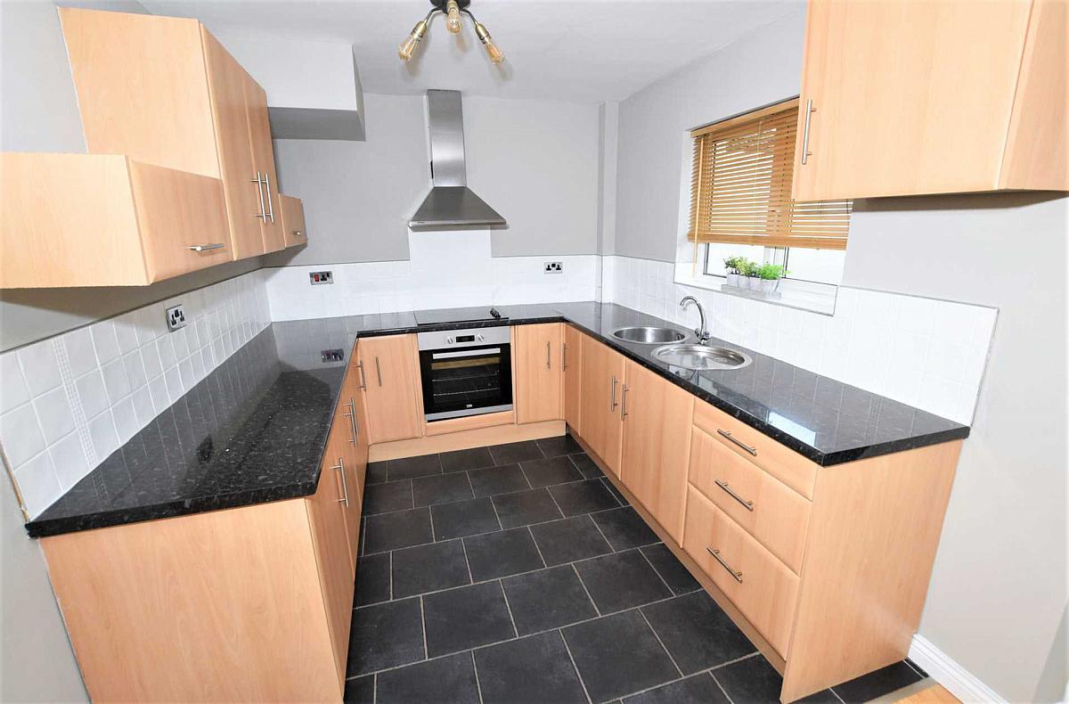 Modern Fitted Kitchen With Built In Appliances / Range Of High And Low Level Units. Patio Doors To Garden