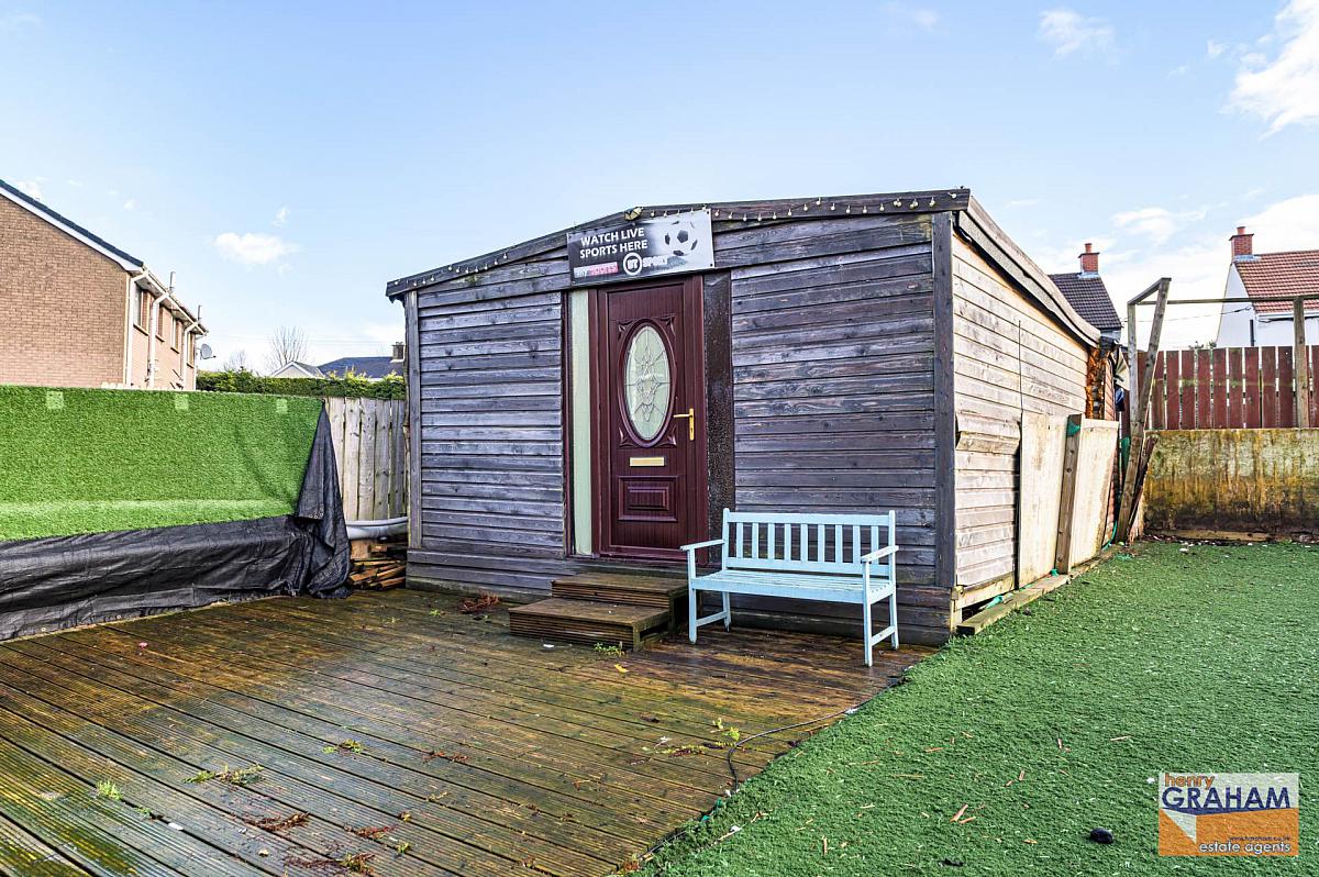 Front garden laid in gravel with shrubbery. Tarmac driveway. Enclosed rear garden laid in artificial grass with decking area. Outside tap and light.