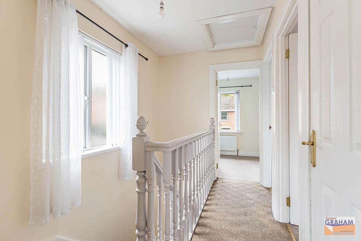 PVC double glazed entrance door with double glazed side panels. Laminated timber floor. Storage under stairs.