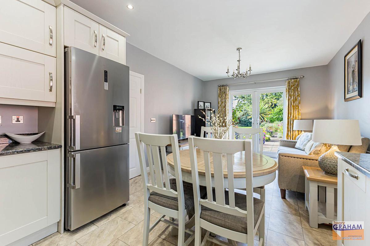 Excellent range of high and low level units. Granite worktops and upstands. Stainless steel sink unit with swan neck mixer tap. Stoves range style cooker. Extractor hood. Recessed spotlights. Open plan to family living area. PVC double glazed double doors leading to patio and rear garden.