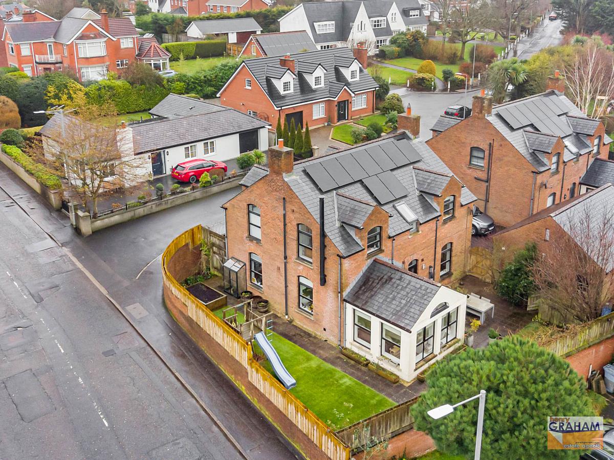A rare opportunity to acquire a period inspired detached residence on the highly sought after Belsize Road, where homes such as this, seldom come on the market. The location is perfect for commuting and only a short walk to the popular Wallace Park and close to leading schools for all ages. Exceptional open-plan living complemented by two additional reception rooms, offering rare flexibility to meet the many demands of the modern family The property boasts a high specification finish with underfloor heating throughout the ground floor, 2.7m ceilings and large arched windows flooding the interior with natural light High energy efficiency rating of B87 with solar panels and eligibility for green mortgagesArchitect designed home by award winning Des Ewing architects Spacious Lounge With Attractive Limestone Fireplace And Multi Fuel Stove / Separate Dining Room Or StudySpacious Open-plan Kitchen, Dining And Family Living Area With Wood Burning Stove Open-plan Family Room With Delightful Aspects Over South Facing Rear Garden And PatioCloakroom With Low Flush Suite / Utility Room With Built In Units Four Well Proportioned Double Bedrooms All With Built In Robes And Laminated Timber Floors Recently Refurbished Luxury Bathroom And Shower Room Well Stocked And Mature Gardens To Side And Rear With South Westerly And Private Aspects / Wide Variety Of Trees, Shrubs And Climbing Plants Garage And Tarmac Driveway Gas Fired And Zoned Temperature Control Central Heating System Herringbone Design Wood Effect Porcelain Tiled Floors Throughout Downstairs / Feature Panelled Walls And Period Features Large PVC Double Glazed Arched Windows In Flared Reveals A rare opportunity to acquire a most outstanding and exceptionally well presented detached residence occupying an exclusive setting within this highly desirable and convenient residential location. We are confident even the most discerning of buyers will be most impressed by this fine home and its prime setting, viewing is therefore strongly recommended to appreciate fully the many attributes it has to offer.ENTRANCE HALL:Herringbone design wood effect porcelain tiled floor. Panelled walls.CLOAKROOM:Low flush suite. Close couple low flush WC. Ceramic wash bowl. Mono style mixer tap. Tiled splashback. Herringbone design wood effect porcelain tiled floor.SPACIOUS LOUNGE: - 4.95m (16'3") x 3.61m (11'10")Limestone fireplace with slate inset and hearth. Multi fuel stove. Herringbone design wood effect porcelain tiled floor.DINING ROOM/STUDY: - 3.6m (11'10") x 3.07m (10'1")Herringbone design wood effect porcelain tiled floor.SPACIOUS KITCHEN/DINING AREA: - 8.21m (26'11") x 3.6m (11'10")Excellent range of built in units and island unit with Corian worktops. Stainless steel sink unit. Swan neck mixer tap. Butchers block occasional dining bar. Neff integrated oven and gas hob. Extractor hood in stainless steel canopy. Neff integrated dishwasher. Dedicated pantry cupboard. Under unit lighting. Herringbone design wood effect porcelain tiled floor. Recessed spotlights. Open-plan to family room. Jotul wood burning stove.FAMILY ROOM: - 3.4m (11'2") x 3.35m (11'0")Feature raised ceiling with arched window. Double glazed double doors leading to patio and rear garden. Herringbone design wood effect porcelain tiled floor.UTILITY ROOM:Range of built in units. Single drainer stainless steel sink unit. Mixer tap. Plumbed for washing machine. Herringbone design wood effect porcelain tiled floor. Stable type PVC double glazed back door. Part tiled walls.FIRST FLOORSpacious landing and staircase with spindled balustrade and oak handrail. Panelled walls. Velux roof/wall window.BEDROOM (1): - 4.16m (13'8") x 3.6m (11'10")Measurement to include range of built in units with sliding doors. Laminated timber floor. Wall panelling and double aspect windows.LUXURY SHOWER ROOM EN SUITE:Recently refurbished. Shower cubicle. Thermostatic shower. Drencher head and shower attachment. Oak vanity unit with wash hand basin and mono style mixer tap. Close couple low flush WC. Porcelain tiled walls and tiled floor. Recessed spotlights. Heated towel rail.BEDROOM (2): - 3.6m (11'10") x 2.91m (9'7")Double aspect windows. Laminated timber floor. Built in robe.BEDROOM (3): - 3.6m (11'10") x 2.81m (9'3")Laminated timber floor. Built in robe.BEDROOM (4): - 3.6m (11'10") x 2.48m (8'2")Measurement to include range of built in robes. Laminated timber floor.LUXURY BATHROOM:Recently refurbished. Freestanding bath tub. Large walk in shower enclosure. Thermostatic shower with drencher rainfall shower head and shower attachment. Oak vanity unit with wash hand basin in quartz worktop. Mixer tap. Tiled splashback. Large circular wall mirror with LED back lighting. Close couple low flush WC. Heated towel rail. Recessed spotlights. One wall with herringbone design feature Carrara marble wall tiles and recessed shelf. Porcelain tiled floor. Separate hotpress.OUTSIDE:Enclosed gardens to side and rear with south westerly and private aspects. Artificial grass lawns to side and rear. Well stocked shrub and border beds. Wide variety of mature trees, shrubs and climbing plants providing a vast array of bloom and colour during the Spring and Summer seasons. Paved patio area. Kitchen garden and small-lean to greenhouse. Outside tap and lights. Tarmac driveway.GARAGE: - 5.41m (17'9") x 3.15m (10'4")Roller shutter door. Light and power. Gas fired boiler.TENURE:We have been advised the tenure for this property is part leasehold and part freehold and that no ground rent has been demanded, we recommend the purchaser and their solicitor verify the details.RATES PAYABLE:For period April 2025 to March 2026 £2,319.99Please note we have not tested any systems in this property, we recommend the purchaser checks all systems are working prior to completion.DirectionsFrom Lisburn proceed along Belsize Road, number 6a is on the rightNoticePlease note we have not tested any apparatus, fixtures, fittings, or services. Interested parties must